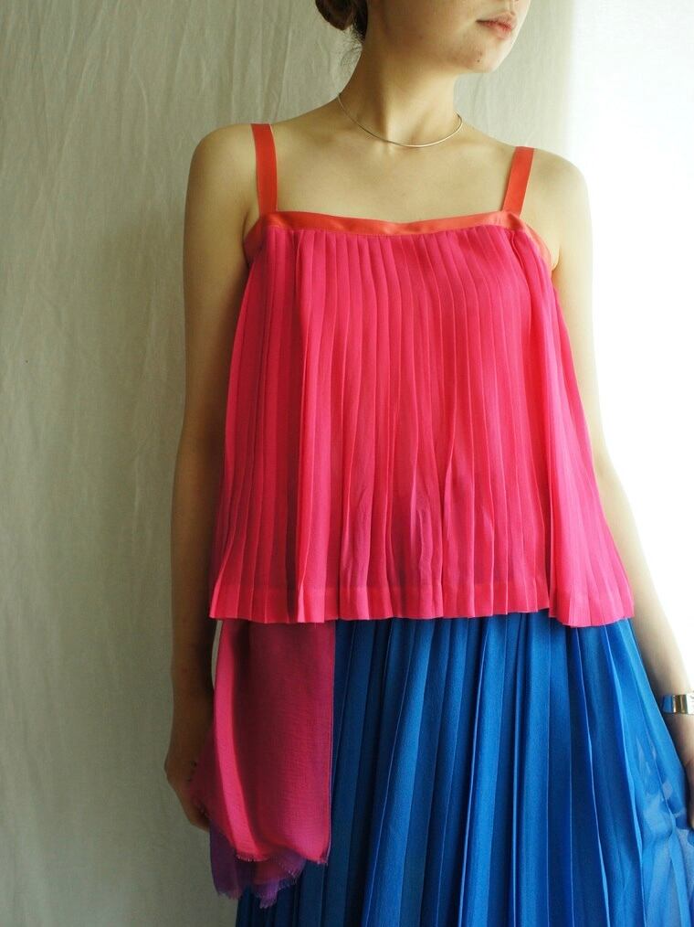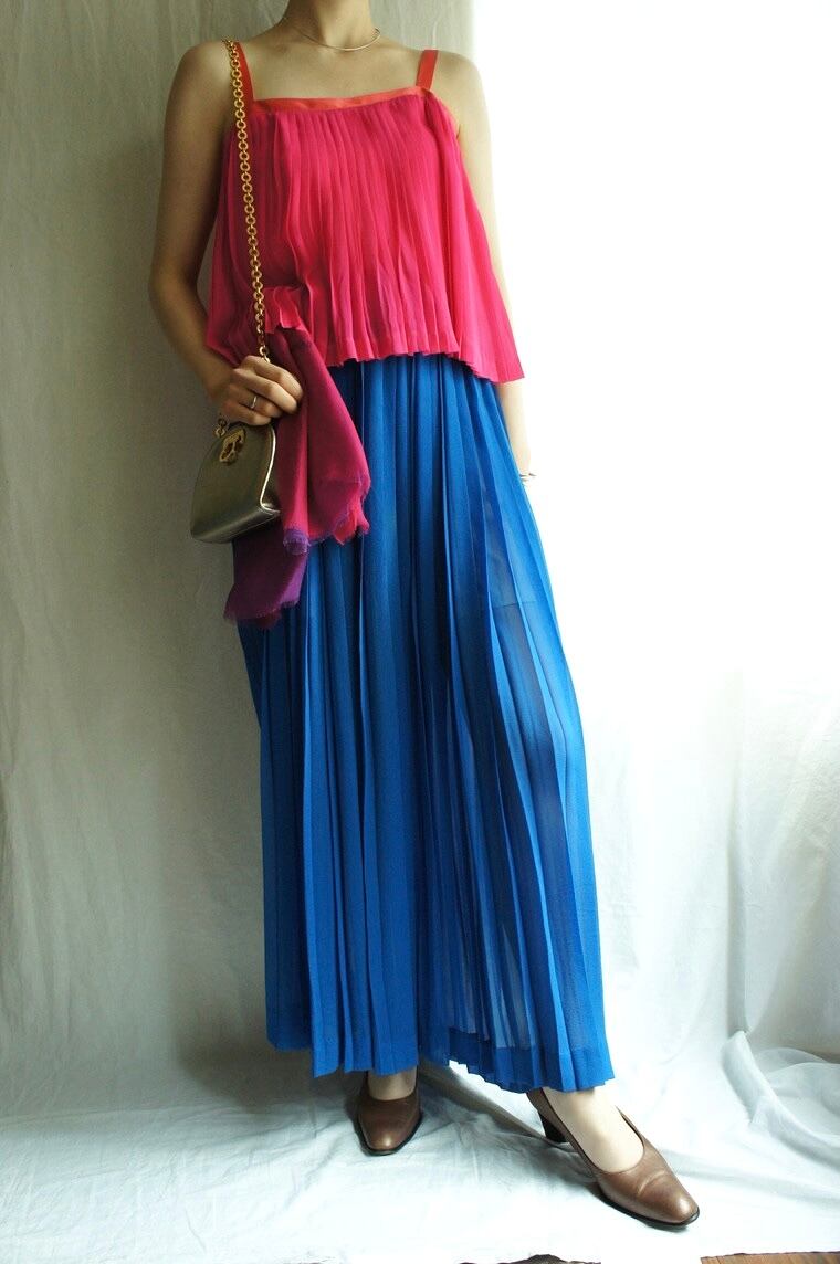 YSL 1970's "rivegauche" Pink×Blue Pleats Set-Up -Rare!!-