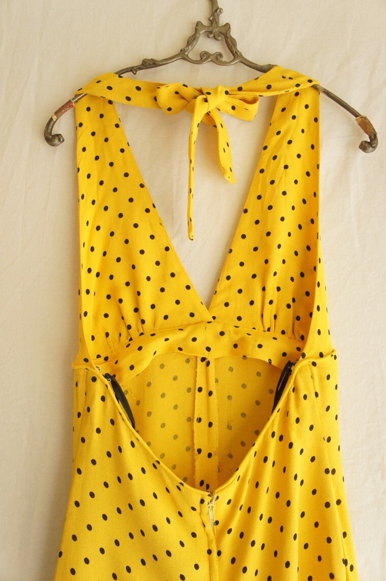 OSSIE CLARK 1970's "Yellow×Black Dot" Holterneck Dress -Rare!-