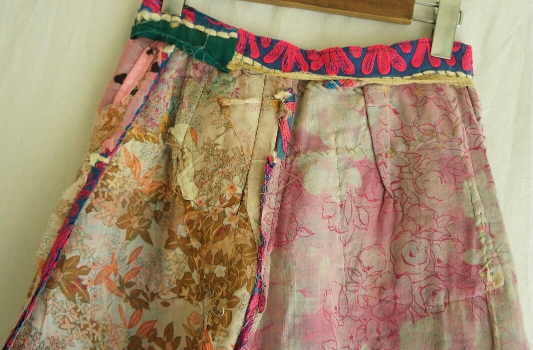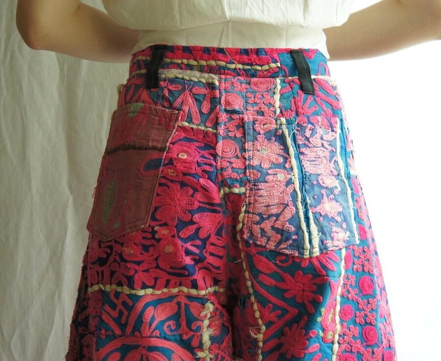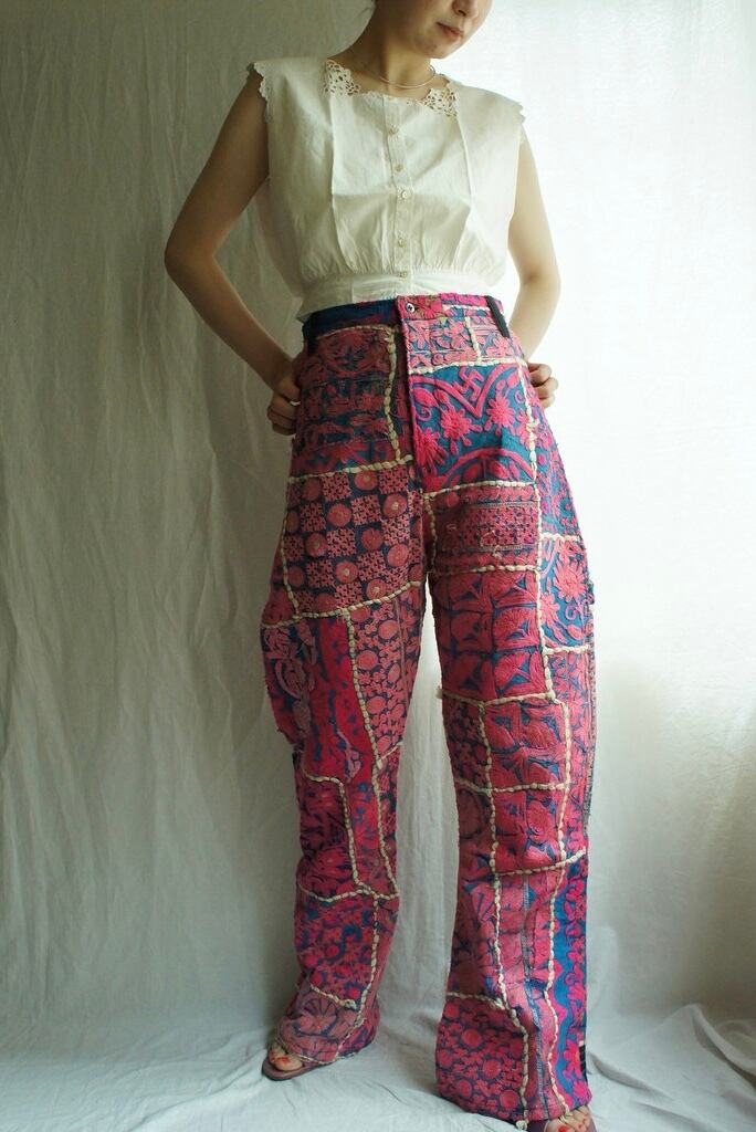 とても気合の入った!花の刺繍パッチワークの、ハンドメイドパンツ、French 1970's Vintage。