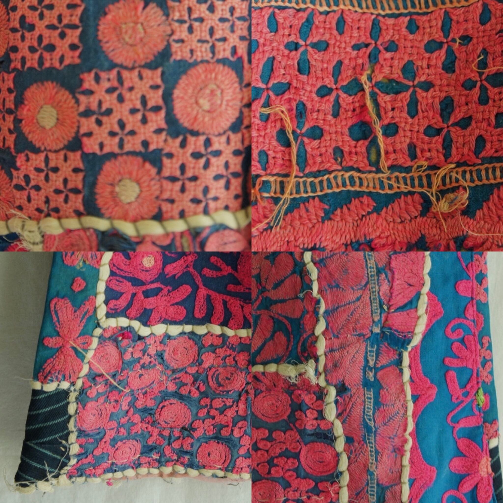 そして裏面は、アンティークの生地を使った絶妙なバランスのパッチワーク、こちらも、まさにアート作品。!!