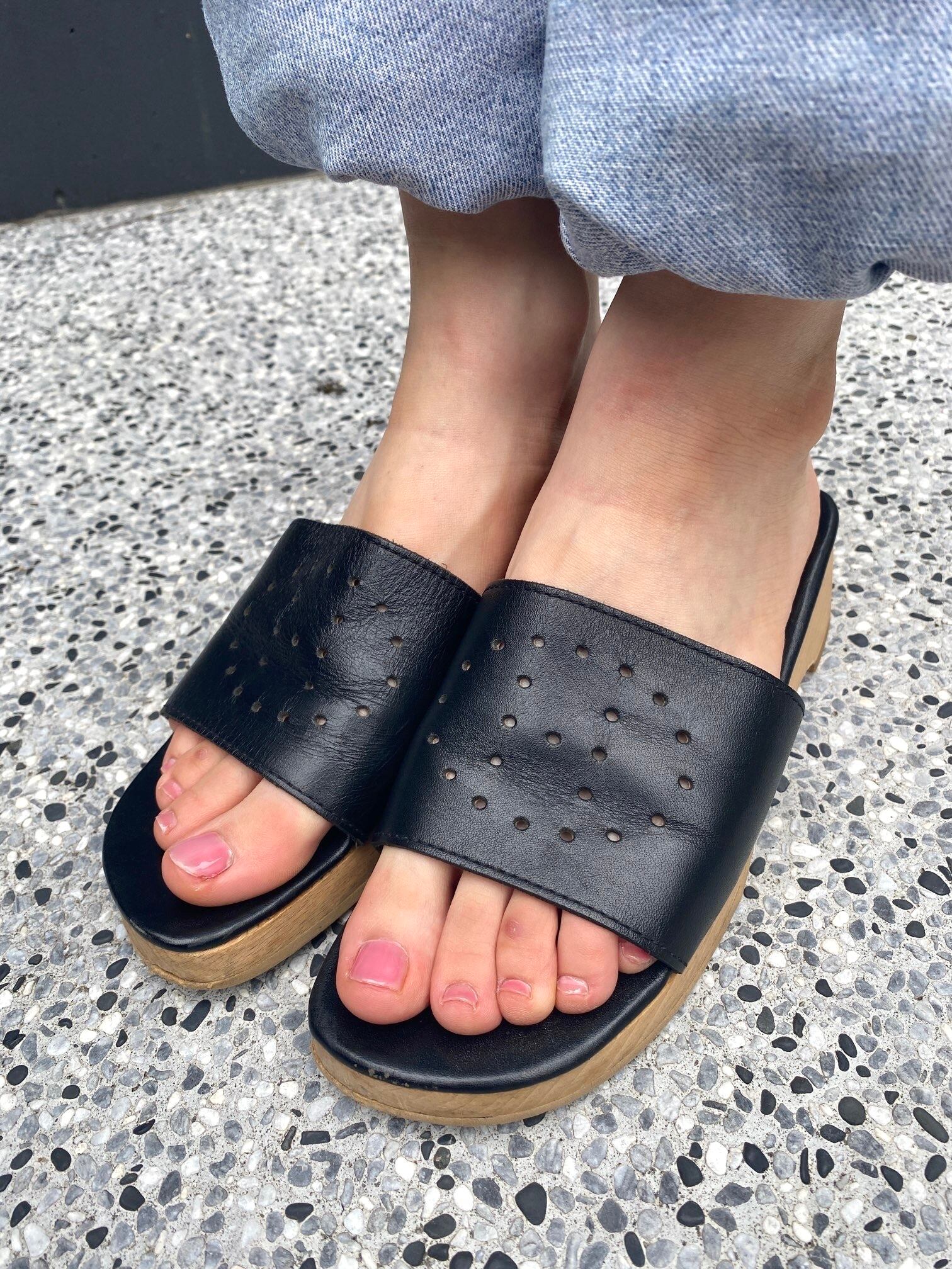 ウッドソールに柔らかレザーのステッチのHロゴがHERMESならでは!