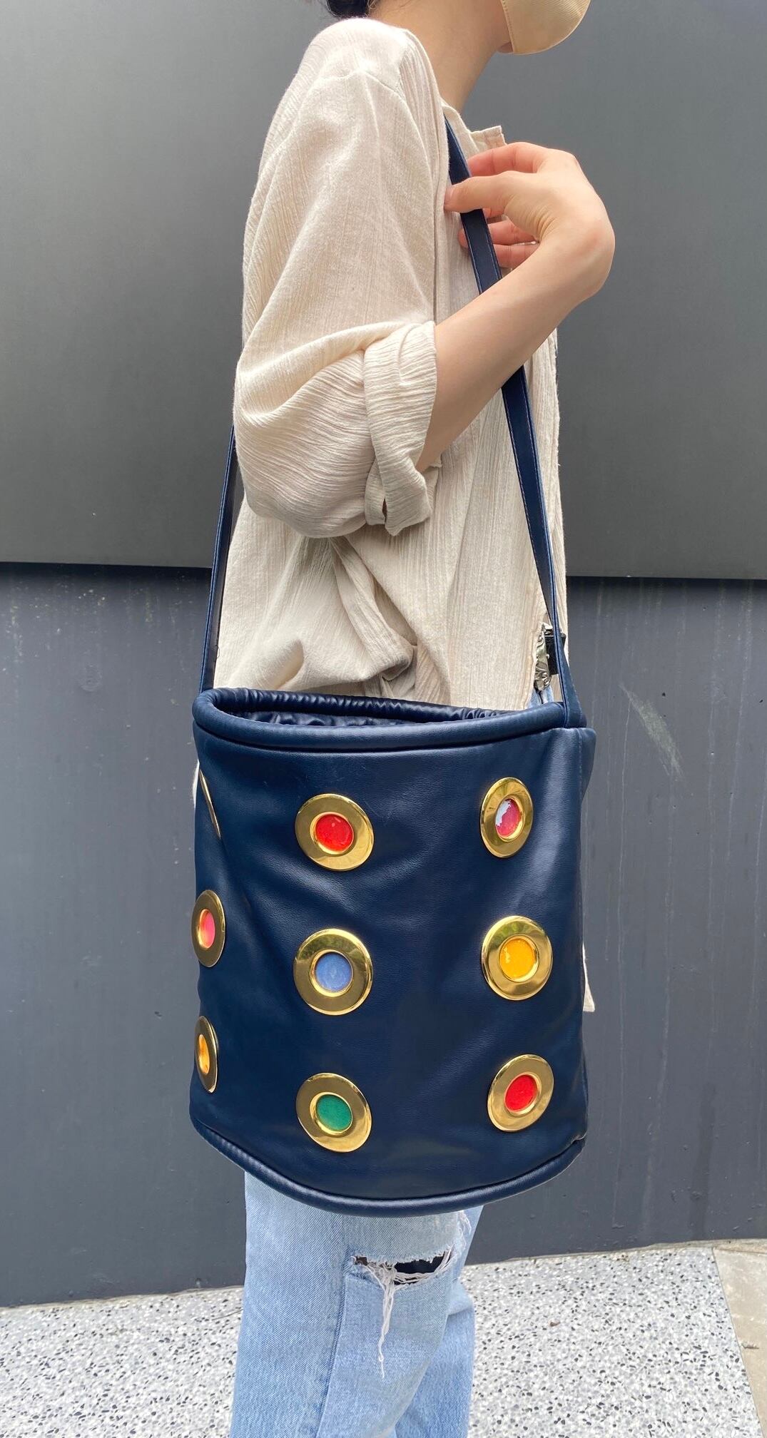 Italy "Colourful Dot" Navy Leather Shoulder Bag
