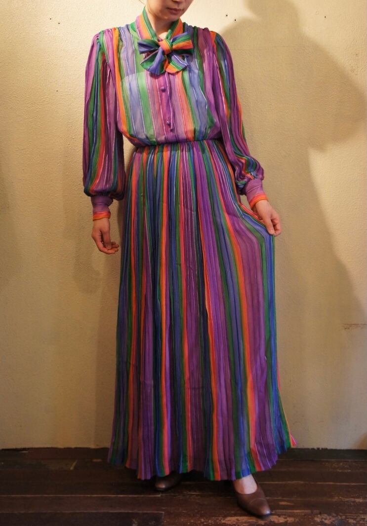 今年のAWアイコンのレインボーカラー!が美しいCELINEのボウタイワンピ。