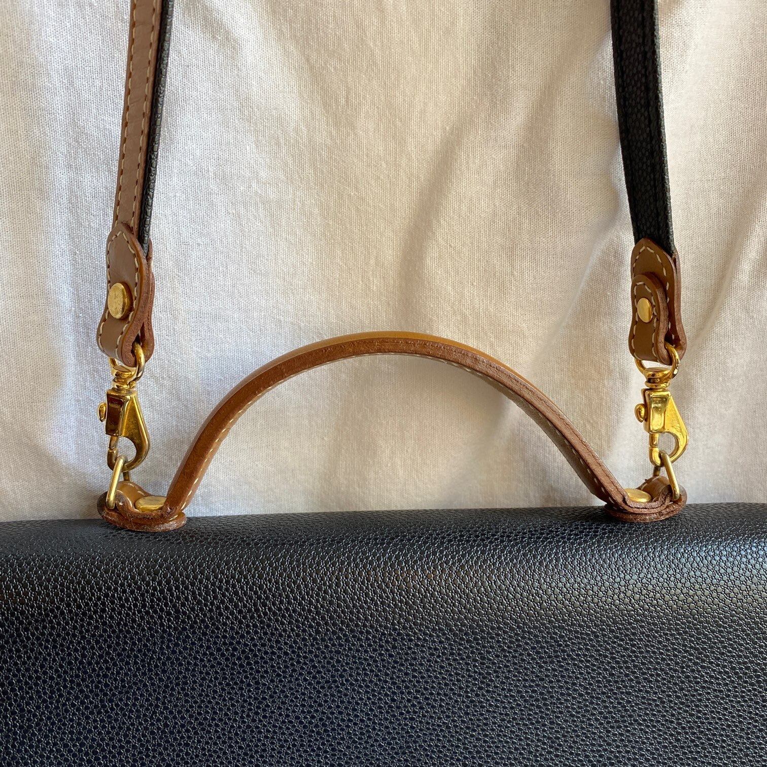 ブラックにブラウンのパイピングが映えるLANCELのバイカラー2-Wayバッグ!