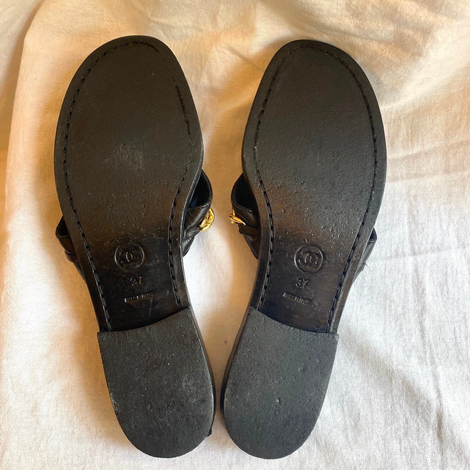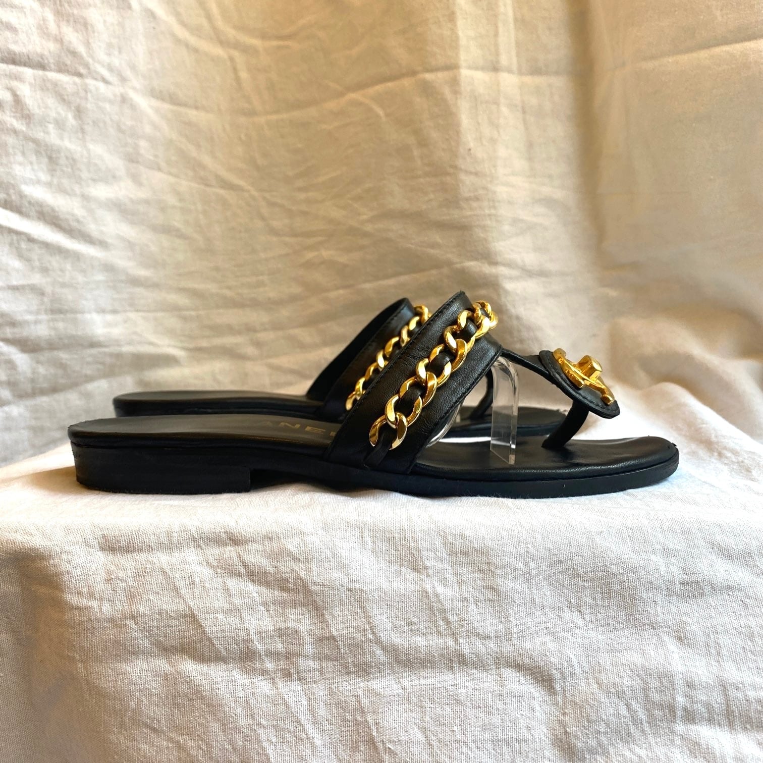 ゴールドのメタルココがポイントなCHANELフラットサンダル!