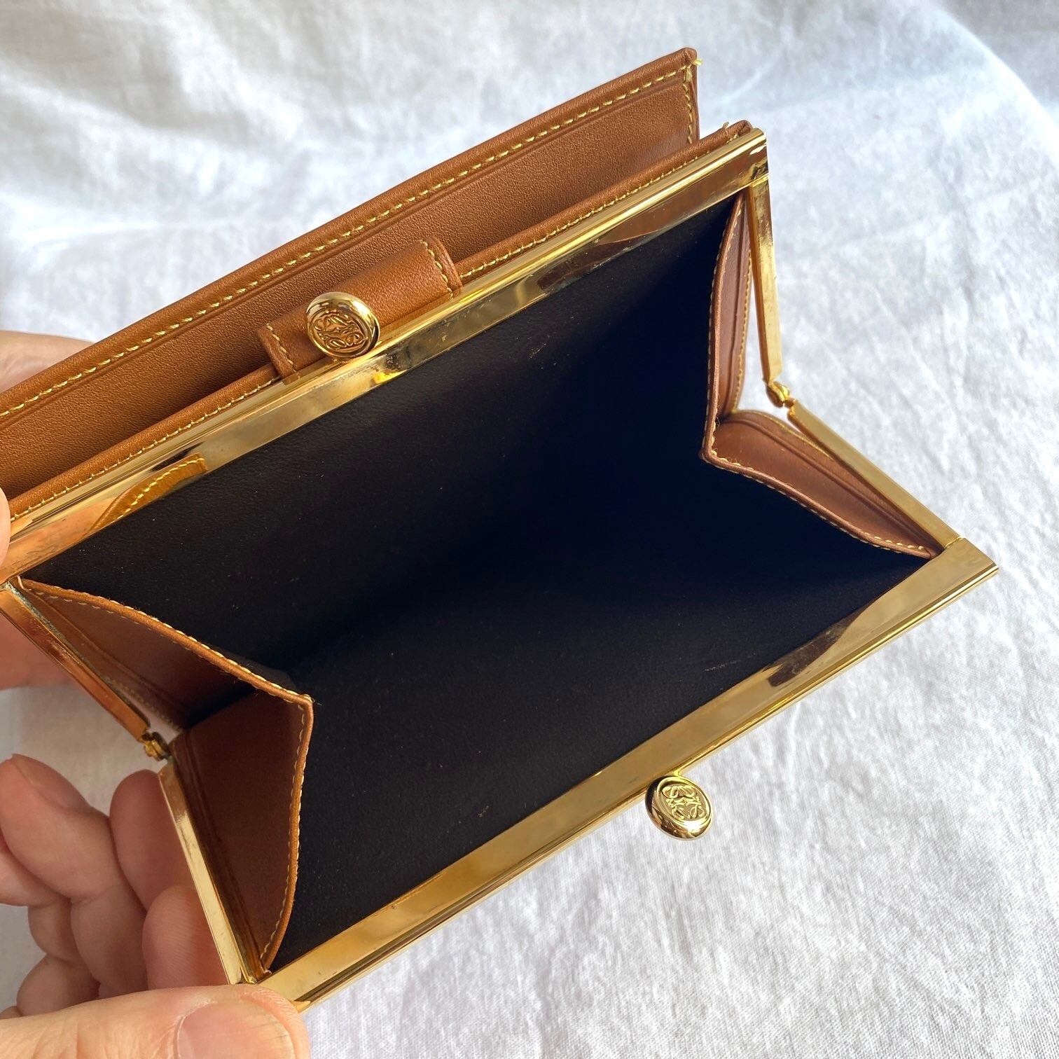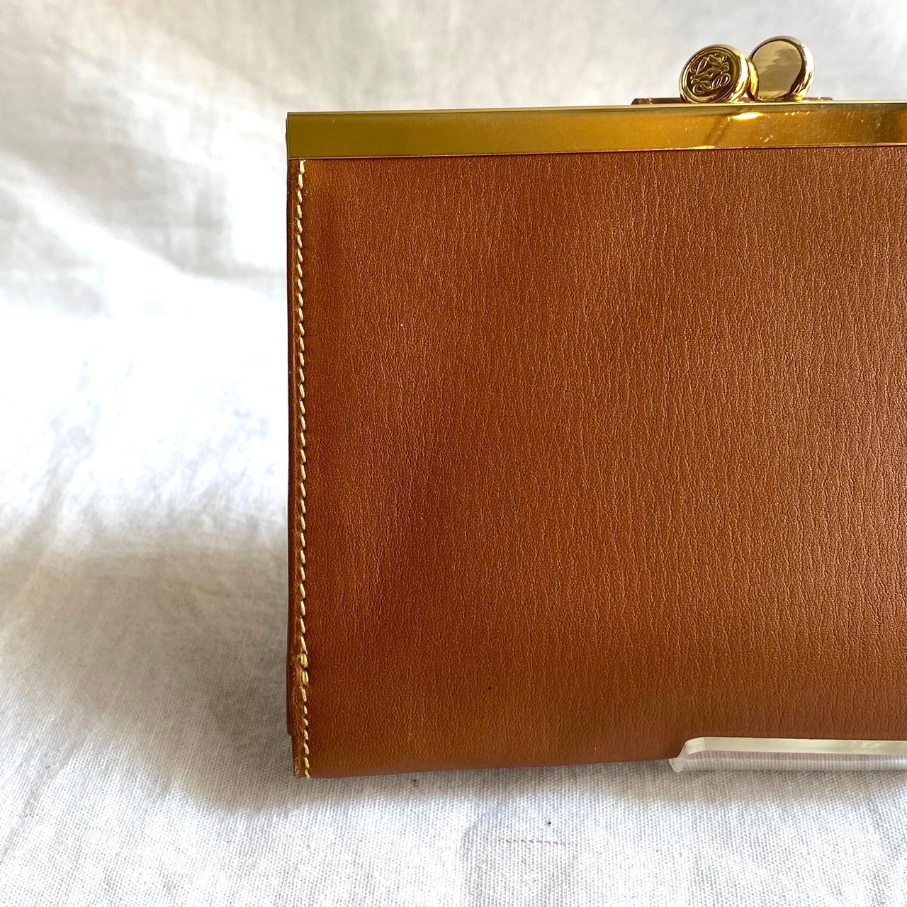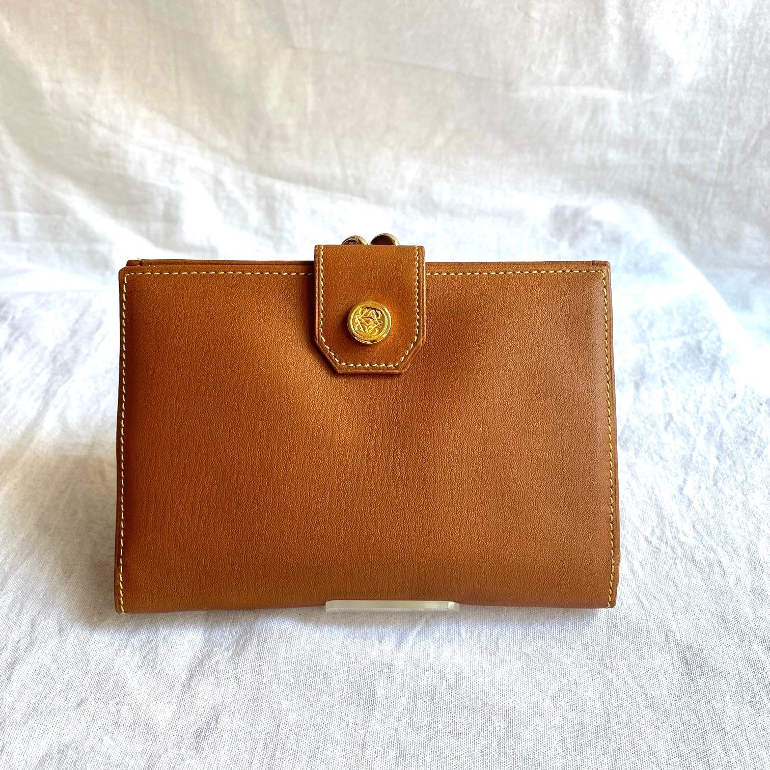 ブラウンレザーにイエローのステッチが大人な遊び心のあるLOEWE折りたたみ財布