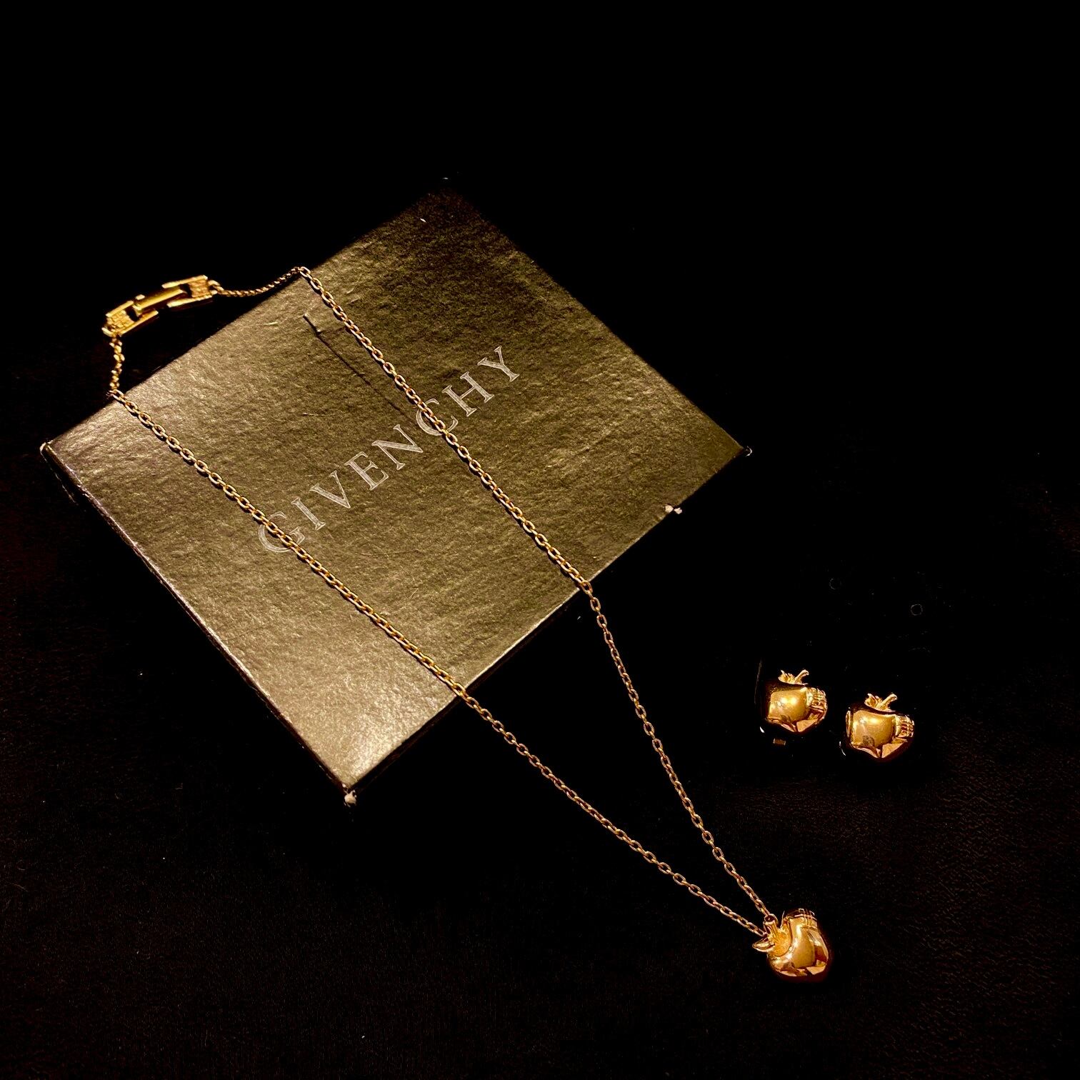 ぷっくりとしたリンゴモチーフがつややかなGIVENCHYネックレス&イヤリングのSet!