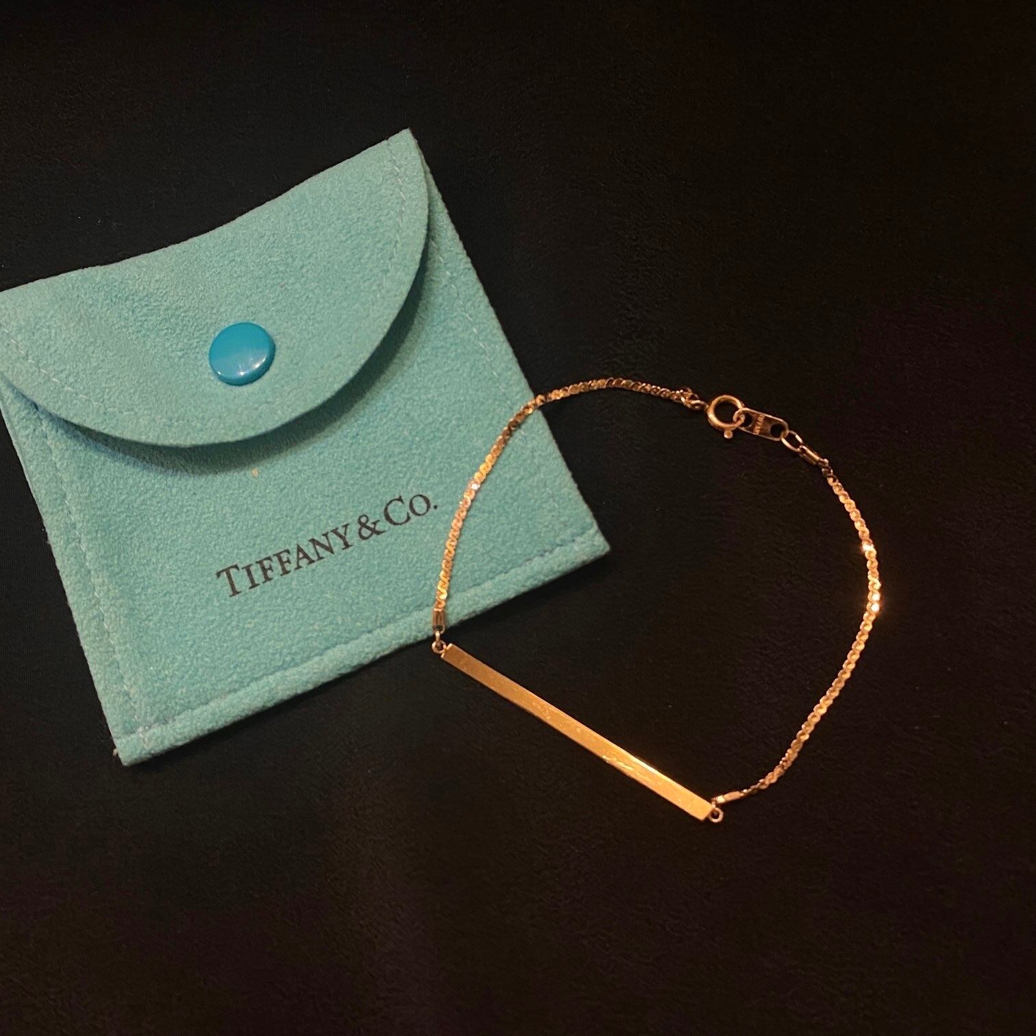とても華奢なチェーンに細めのプレートモチーフが繊細な雰囲気のTIFFANYブレス!