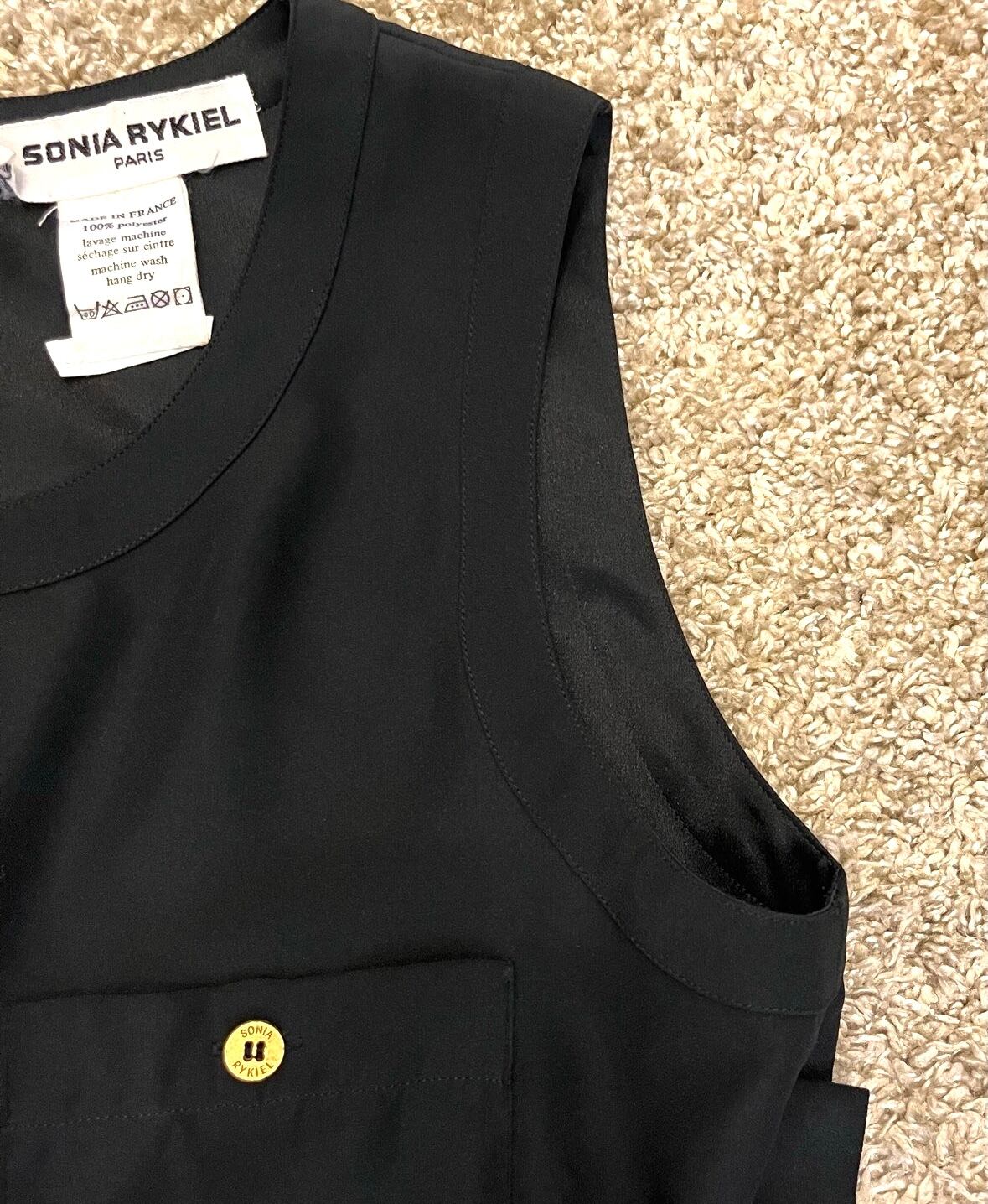 SONIA RYKIEL "Gold Button" Black Sleeveless Tops #01