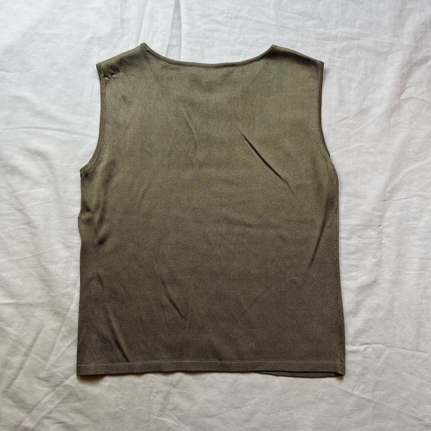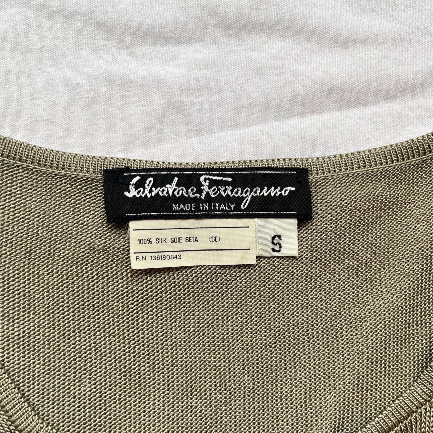 FERRAGAMO "Khaki Grey" Silk Knitted Sleeveless Tops