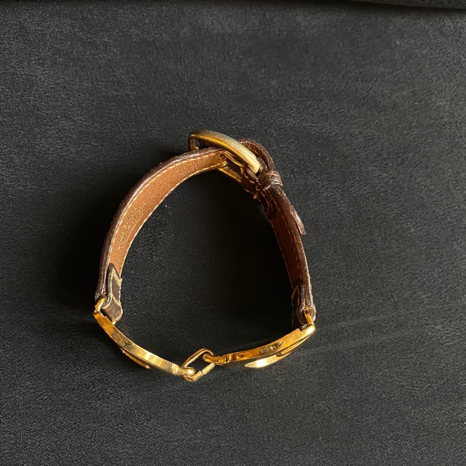 GUCCI "G" Brown Leather×Metal Bangle