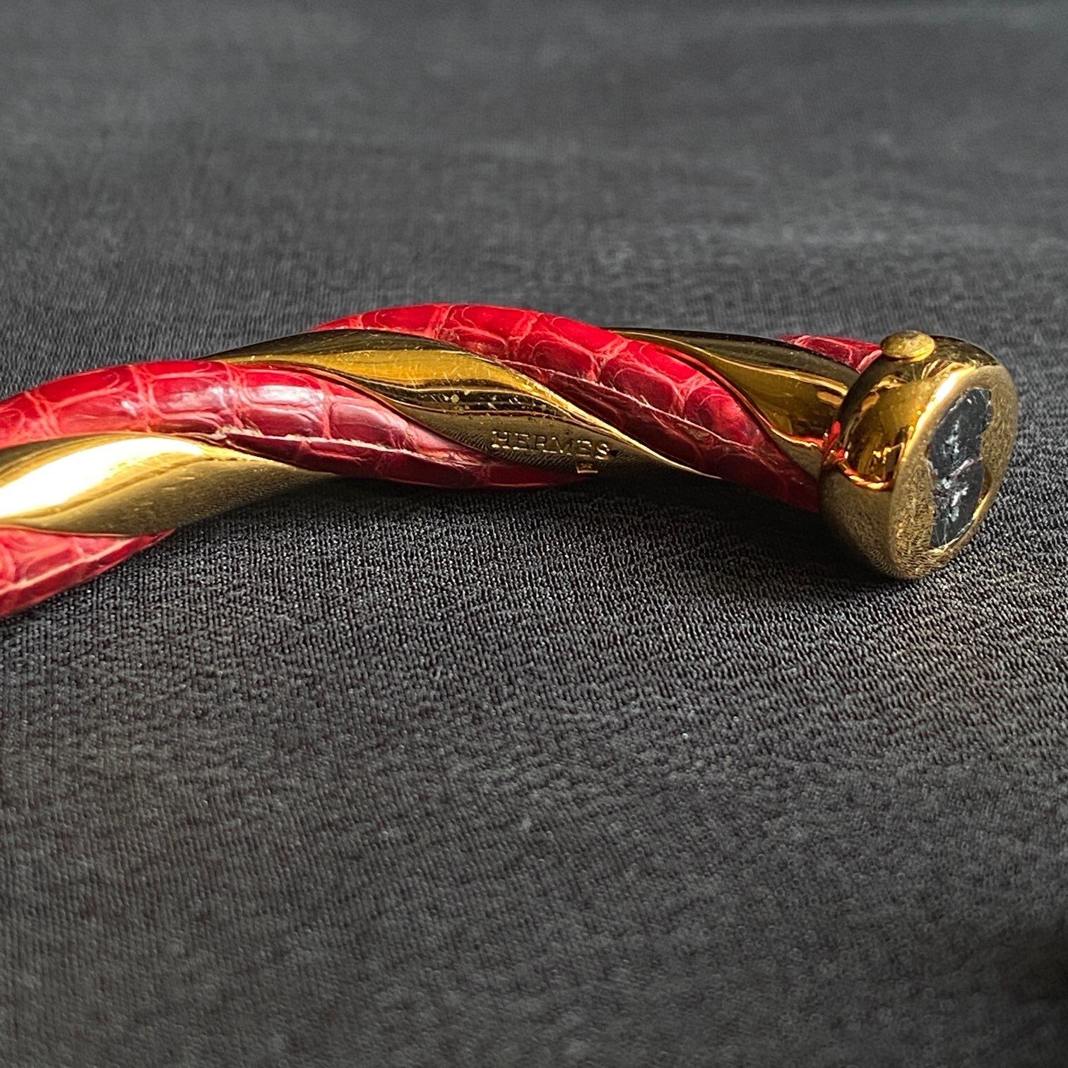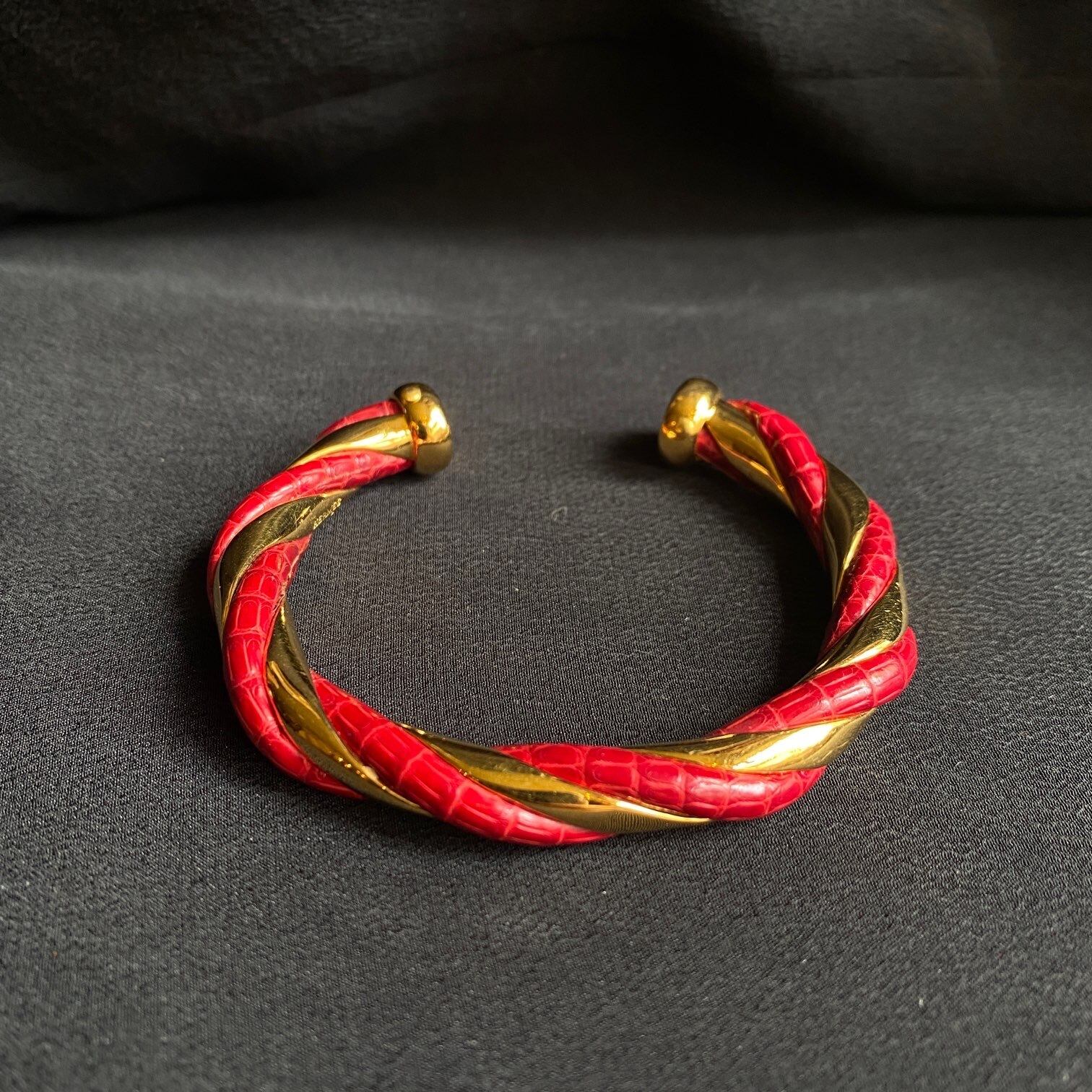 赤いレザーとゴールドの枝のようなのツイストデザインがユニークなHERMESのバングル!