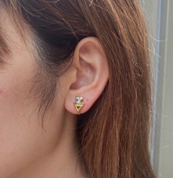 小さなクレージュロゴと三角モチーフが遊び心のあるイヤリング!