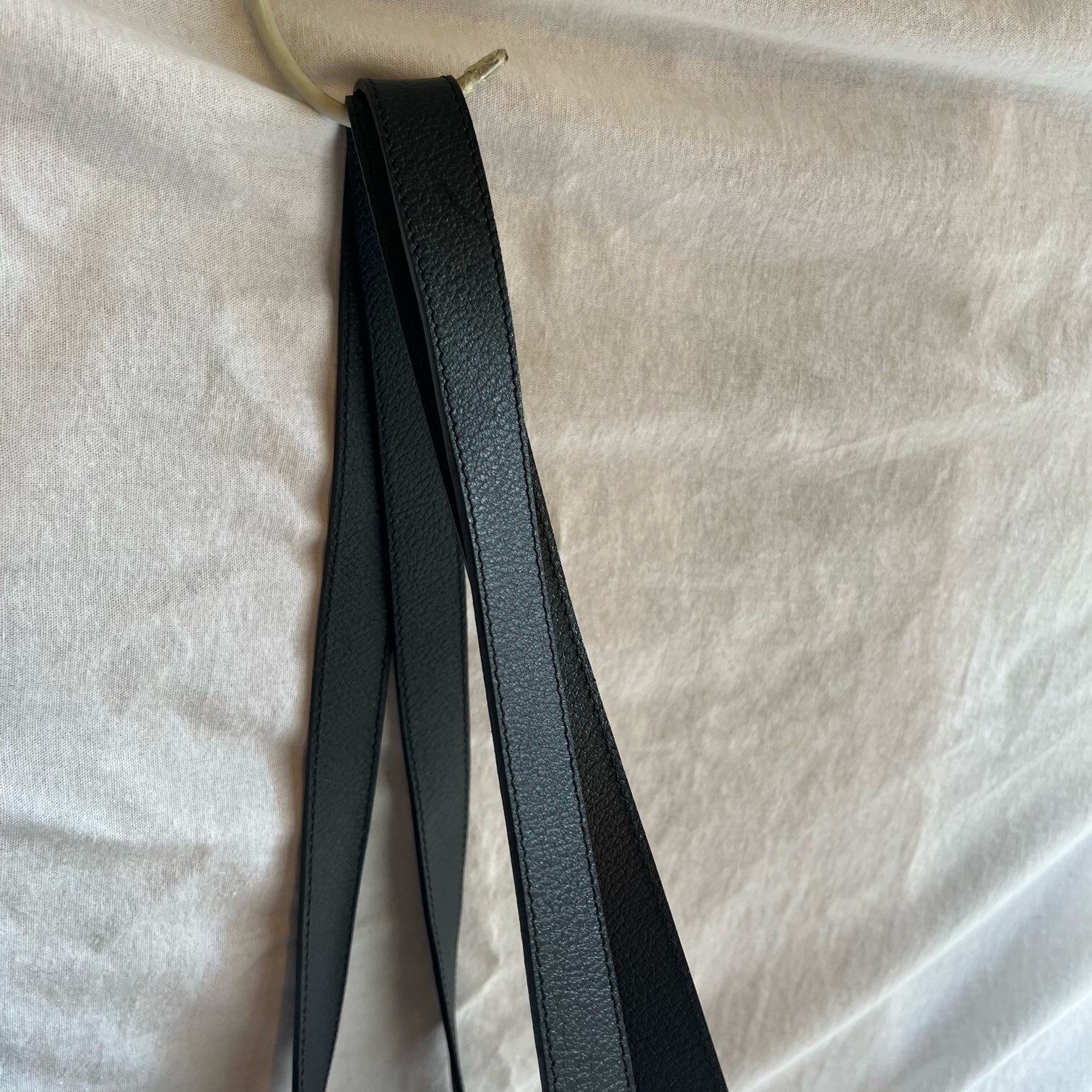 ブラックレザー地にブラウントーンのYSLロゴ刺繍の入ったモダンなデザインが魅力的。。。