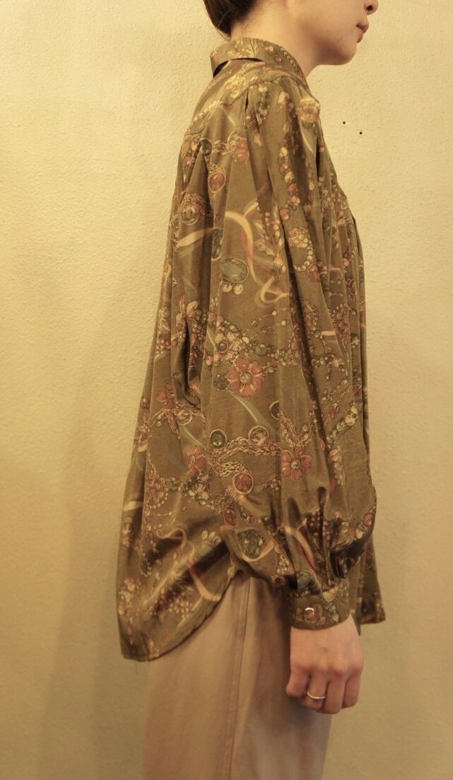 前後の丸いカットの切り替えにボリュームあるタックの, 凝ったシルエットの80’s Italy Vintageブラウス!