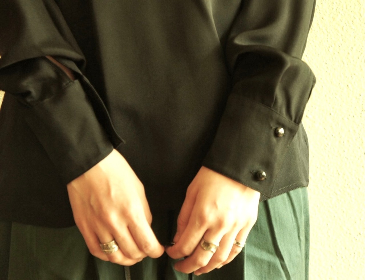 ネックのボタンや袖のボタン周りのギャザーなど動きもまた超エレガント、流石です。