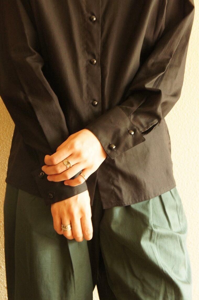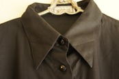 襟のステッチの内側の隠れボタンや、かっとが綺麗なボタンのカフス使い。。ユニークなデザインになっています。