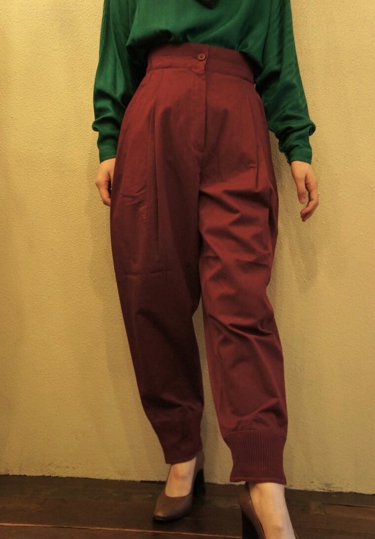 キュッとしまったハイウエストに、腿周りのふわっとしたボリューム、そして裾にかけてのスラックスラインというメリハリがたまらないデザイン☆