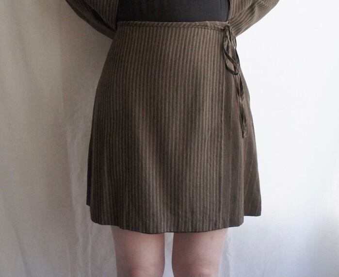 スカートはラップスカートで、動きのあるシルエットが作りやすく、前後のストライプの柄が異なったデザインも素敵。 ☆
