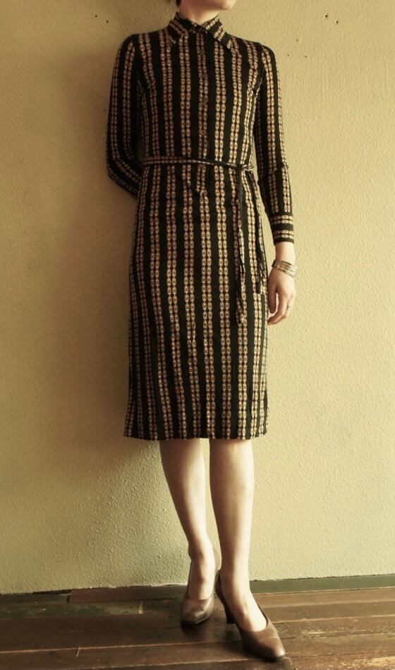 CELINE 1970~1980's "Chain Striped" Black Silk Dress