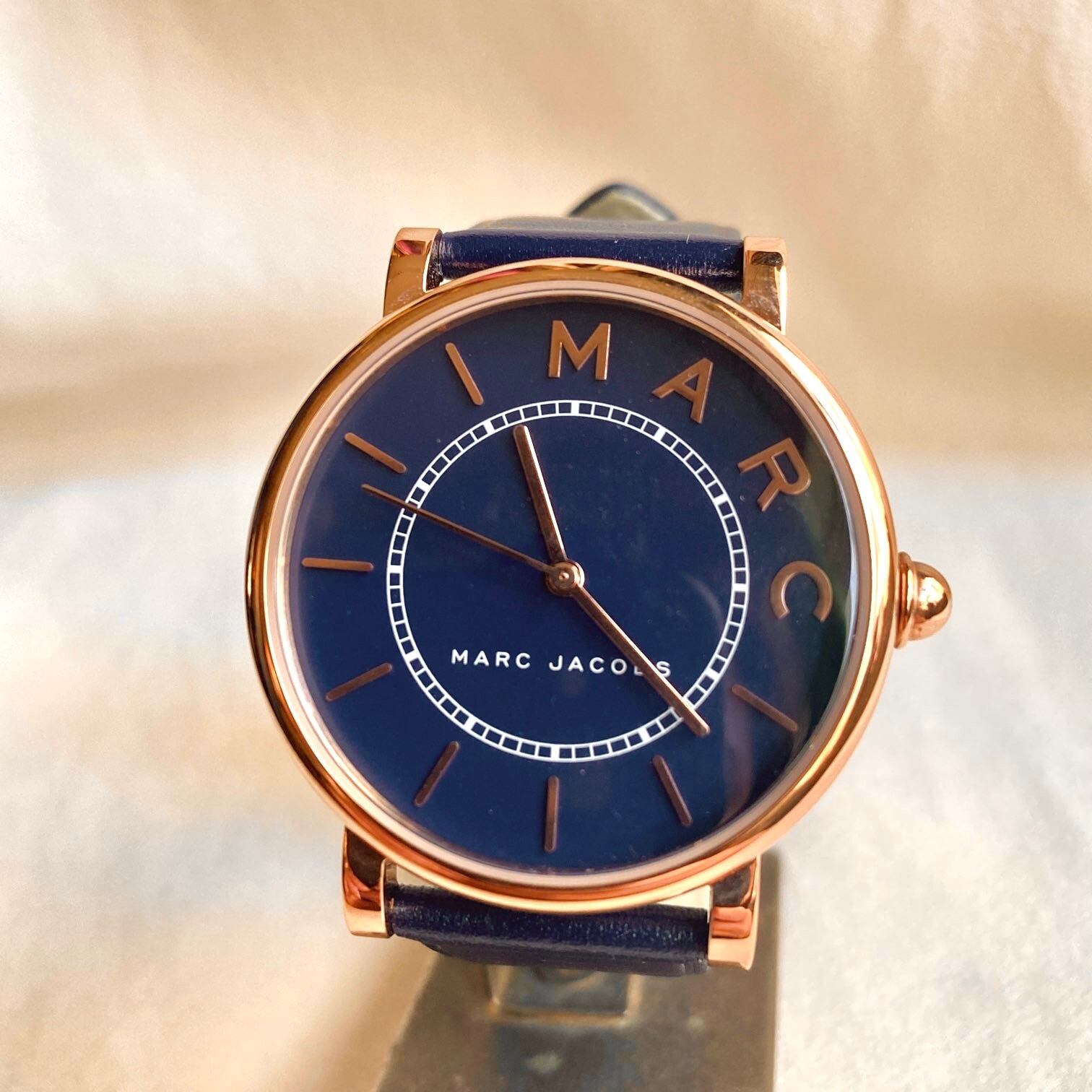 ダークネイビーにピンクゴールドのフェイスが映えるMARC JACOBSの電池式腕時計!