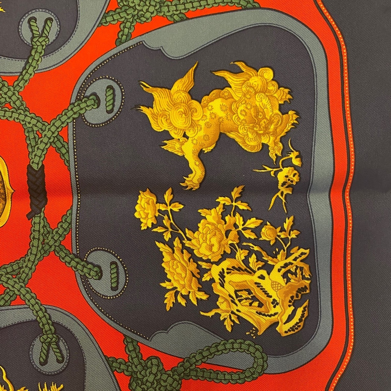 ドラゴンの絵柄がオリエンタルな雰囲気のHERMESミニスカーフ!