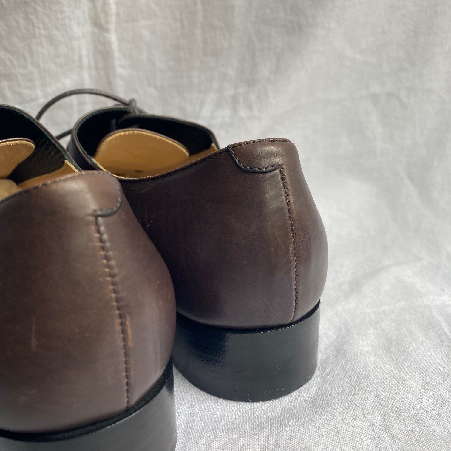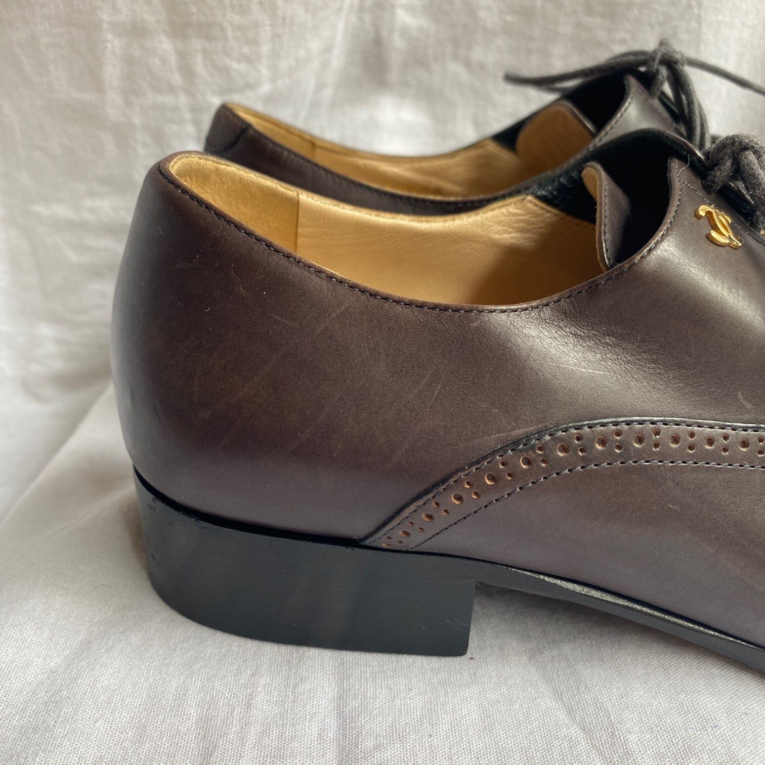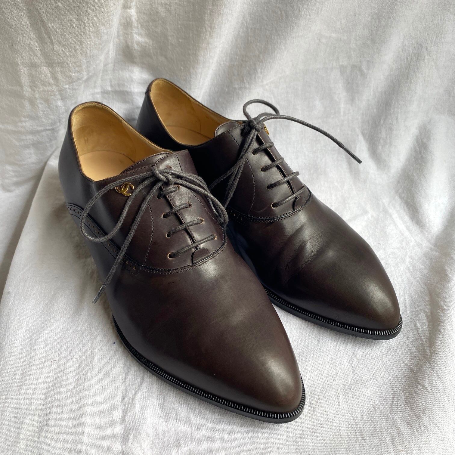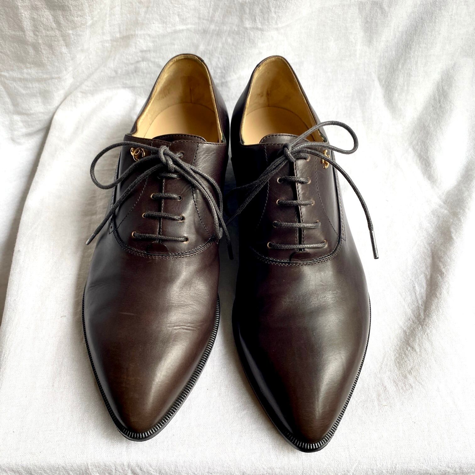 CHANEL "tiny COCO" Dark Brown Leather Lace-Up Shoes