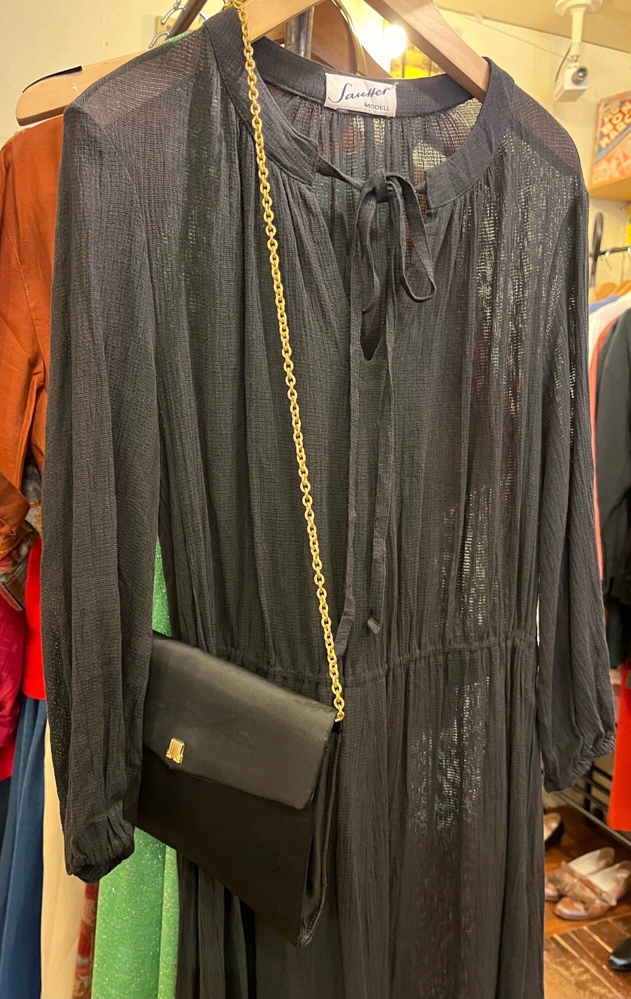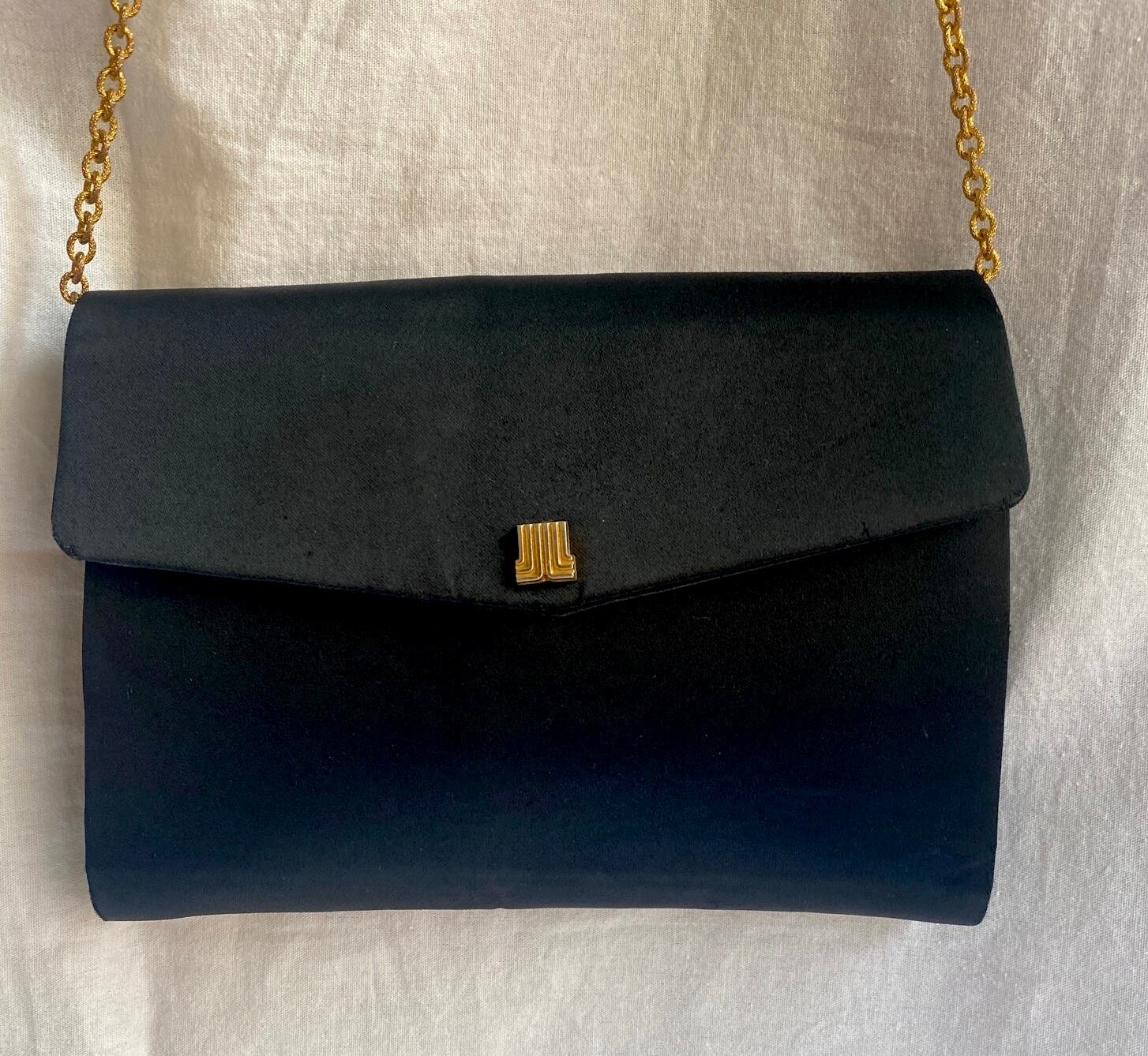 つやっとしたブラックサテン地にゴールドのLANVINロゴが映えるLANVIN 1980's Vintage Bag!