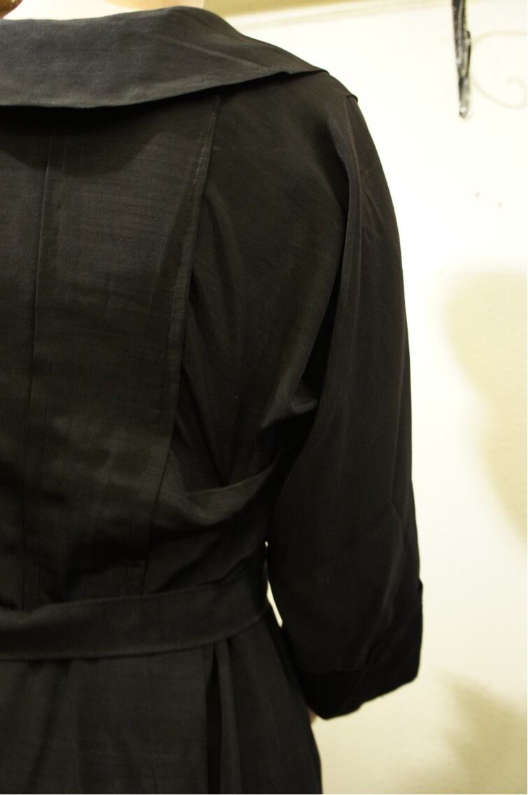 肩や腕のラグラン袖や、絶妙なフィット感、そしてロング丈のビクトリアアンティークドレスではありそうでないデザインです。