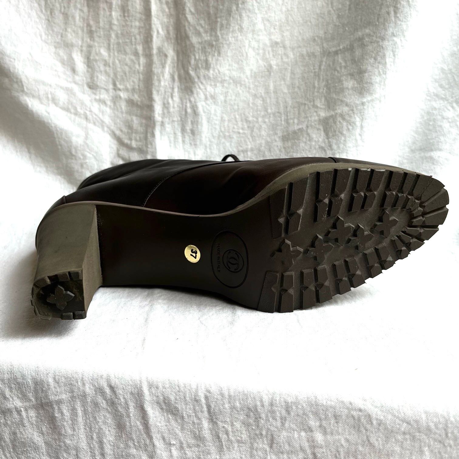 CHANEL "Dark Brown" Lace-Up Short Heeled Boots