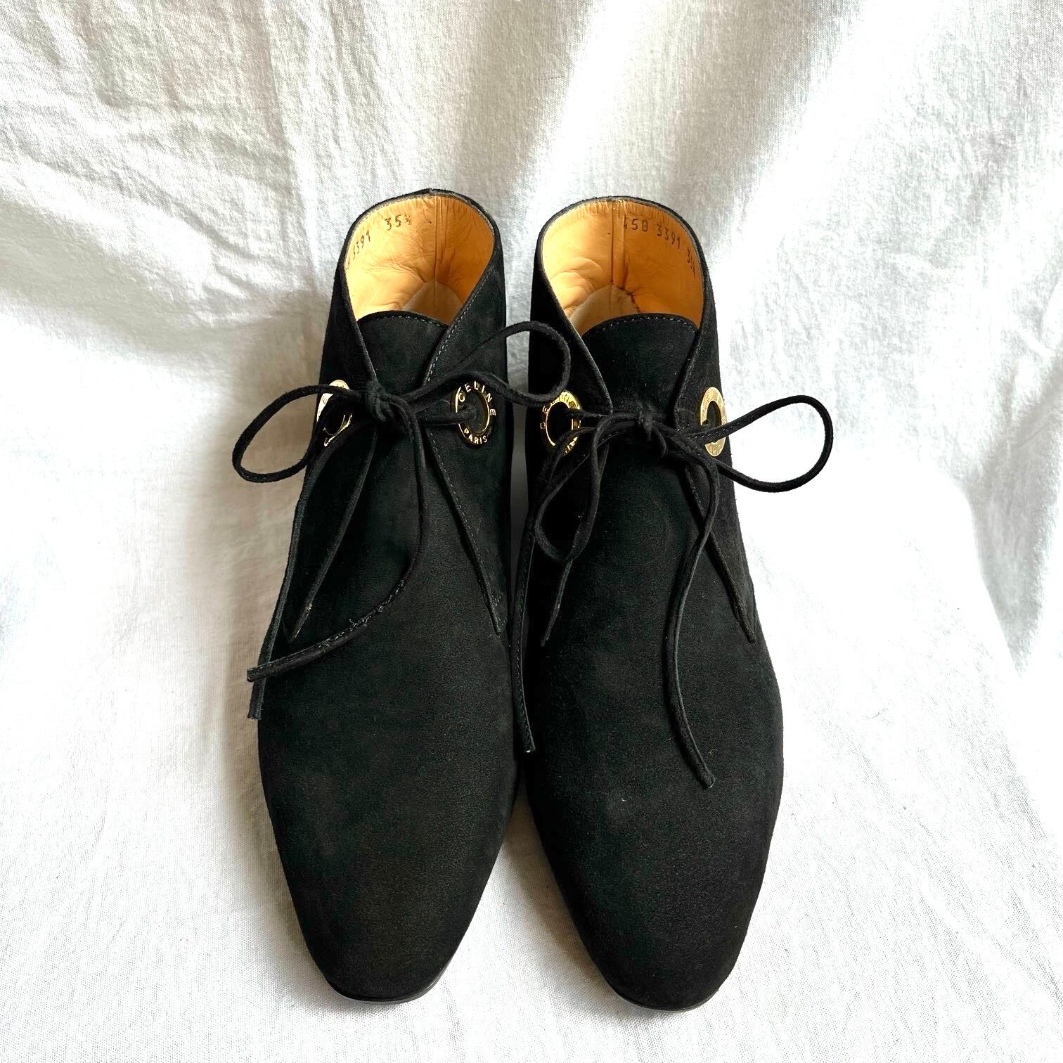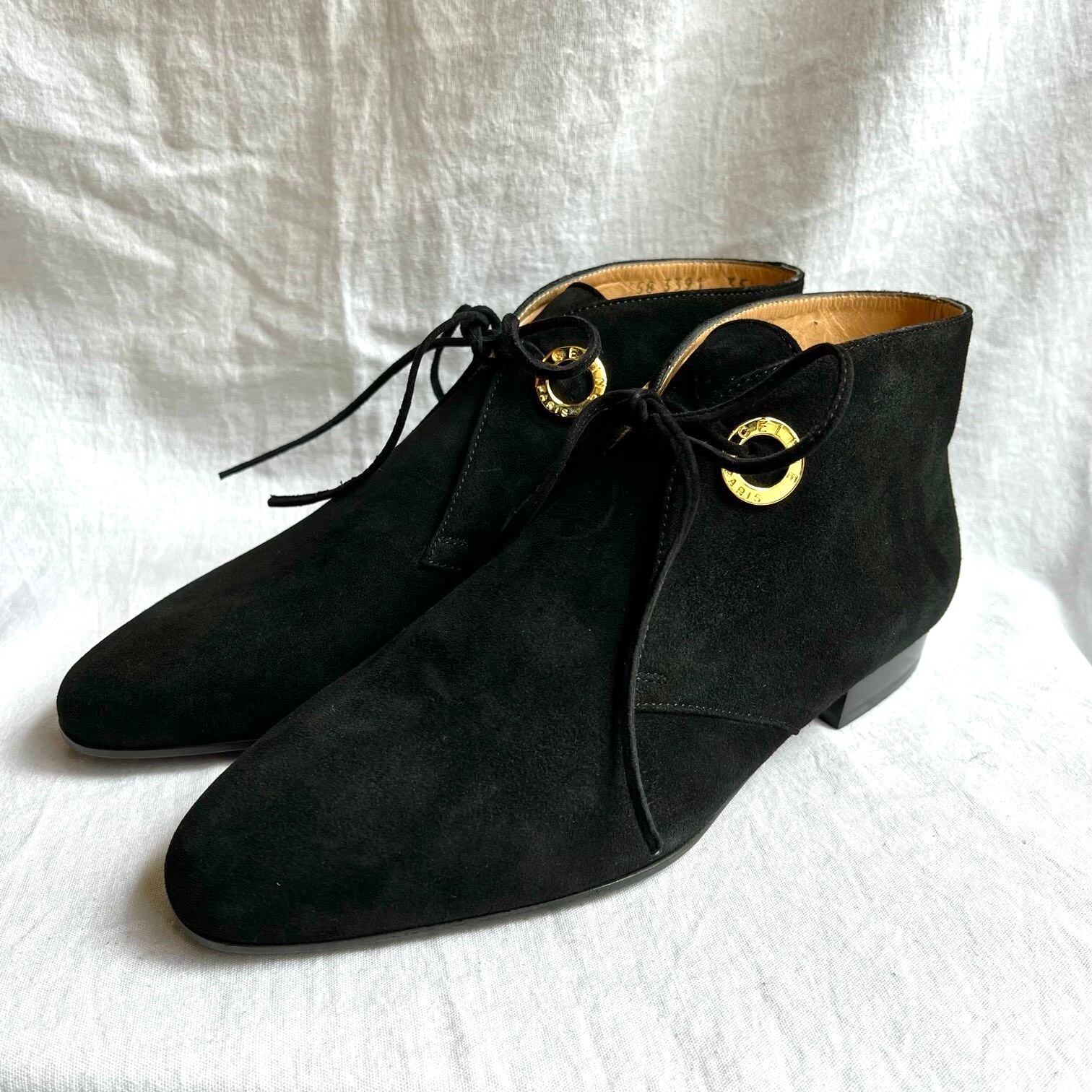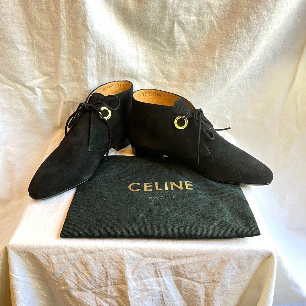 CELINE "Black Suede" High-Cut Lace-Up Shoes -Dead Stock!-