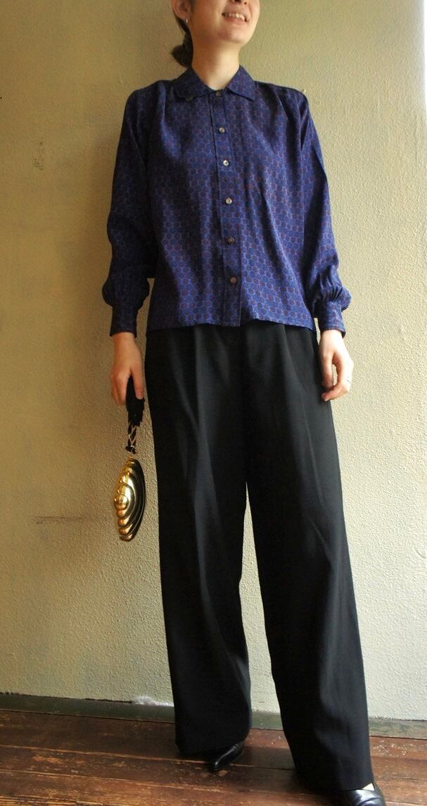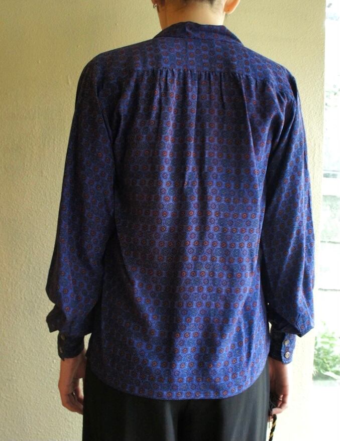 パープル地に花のパターンが繊細なYSL 1980's Vintage シルクブラウス!