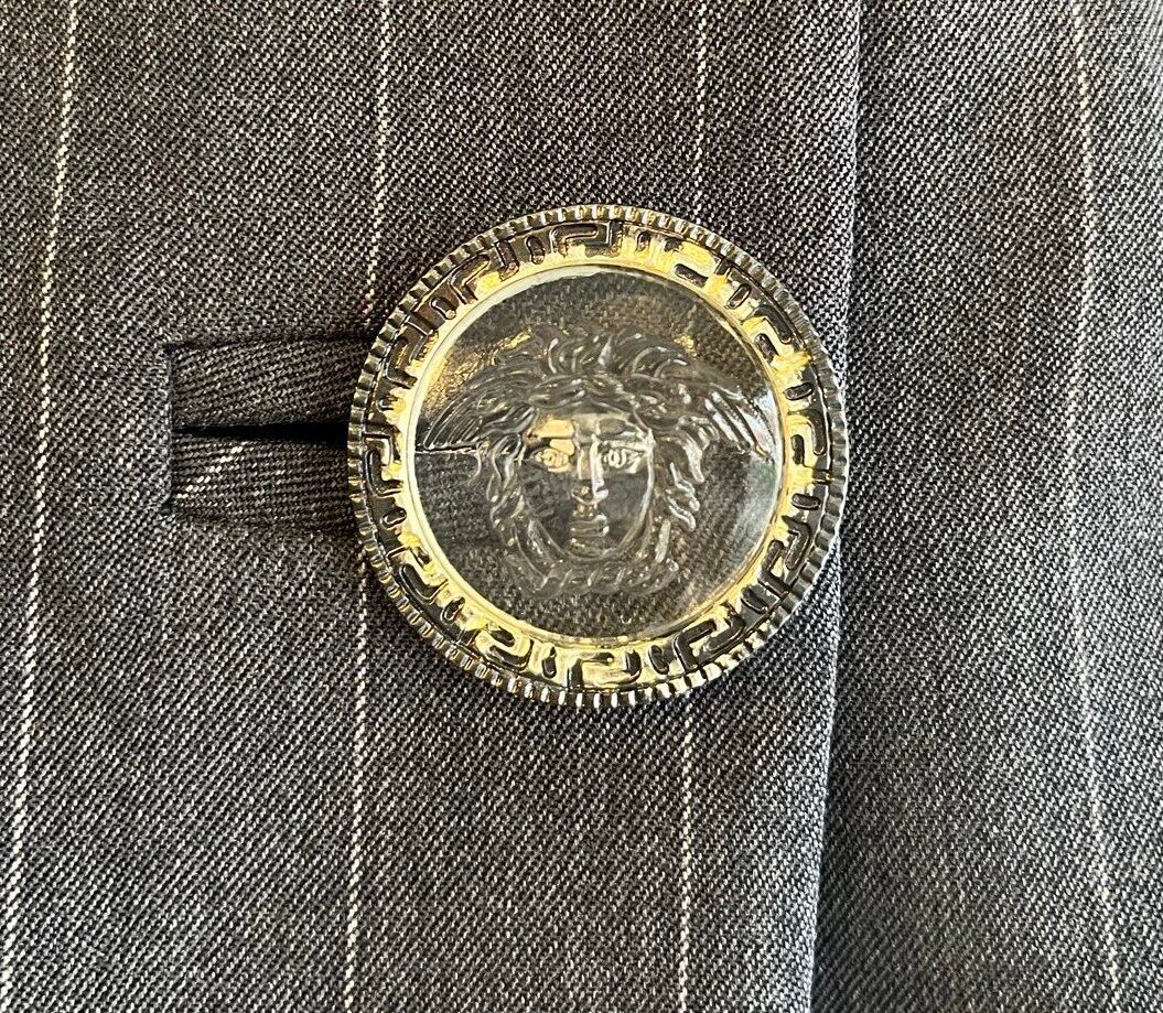 大きなメタル×クリアなボタンにはメデューサロゴが入っていて、VERSACEならでは☆