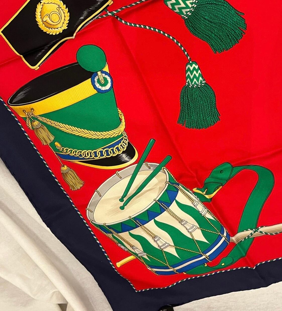 マーチンバンドの帽子や太鼓のモチーフがユーモアあふれるCELINE Vintageスカーフ!