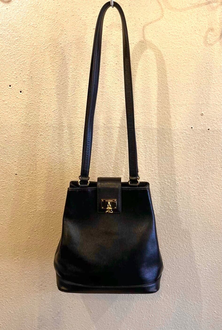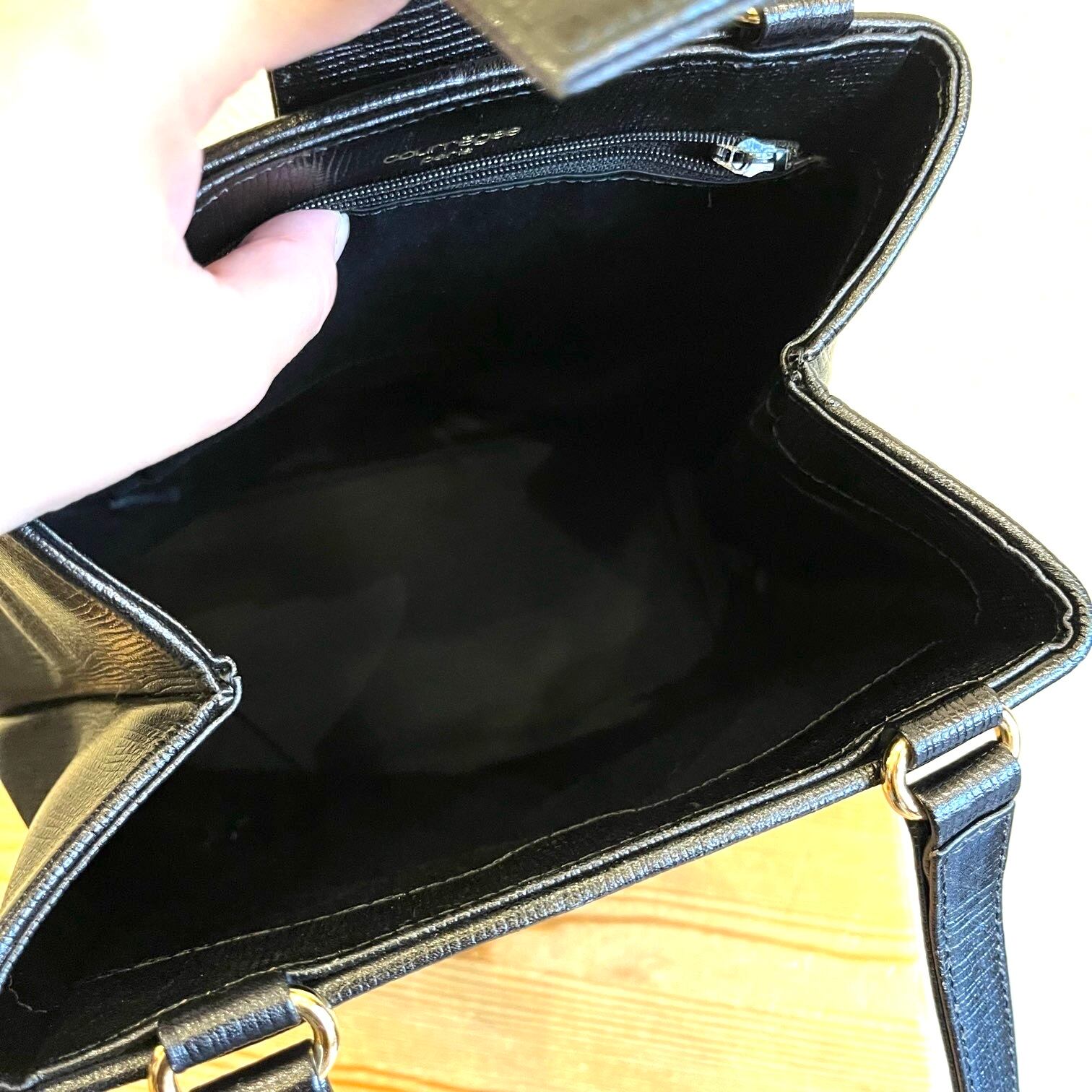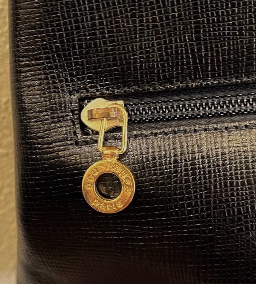 ブラックレザーにゴールドのクレージュロゴチャームが映えるダブルストラップショルダー!