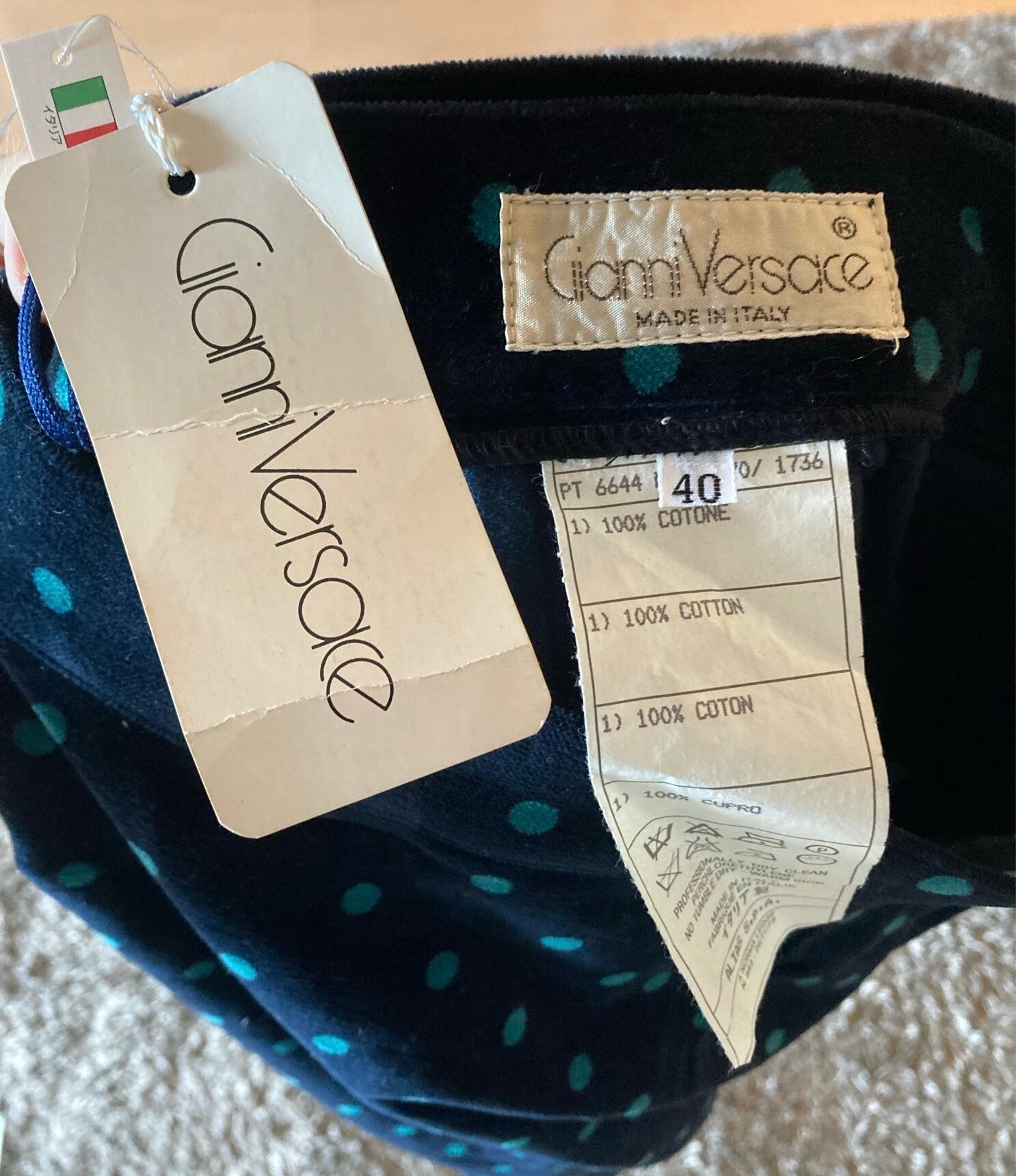 ダークネイビーにグリーンのドットが大人な遊び心を感じるVERSACE 1980'sベロアスカート!
