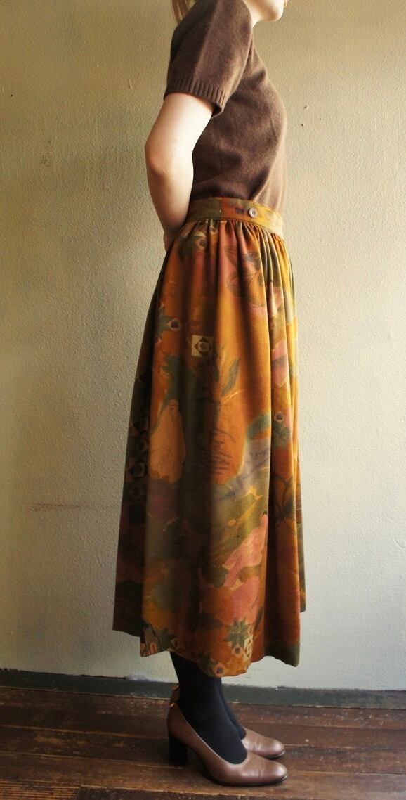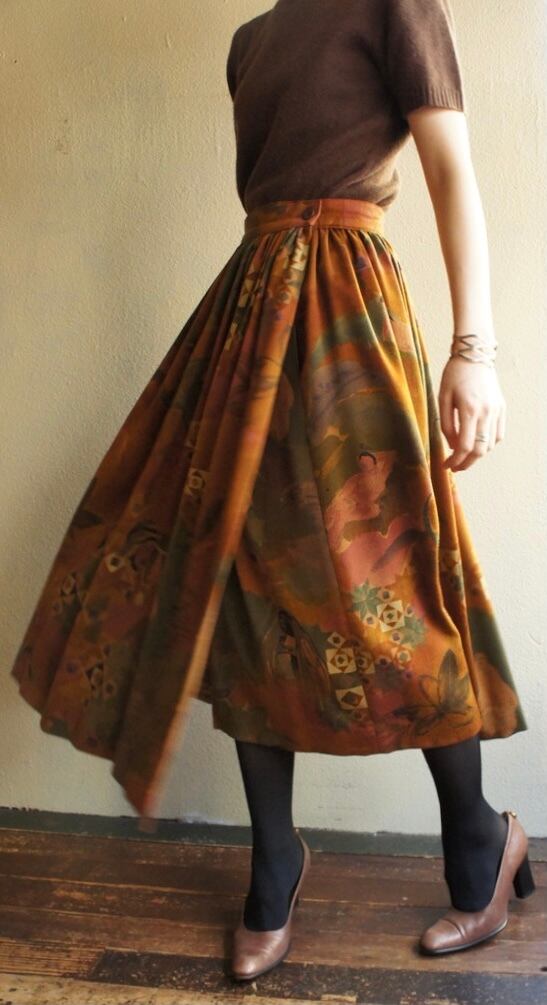 ブラウンベースに所々メタリックゴールドが施されたESCADAフレアスカート!