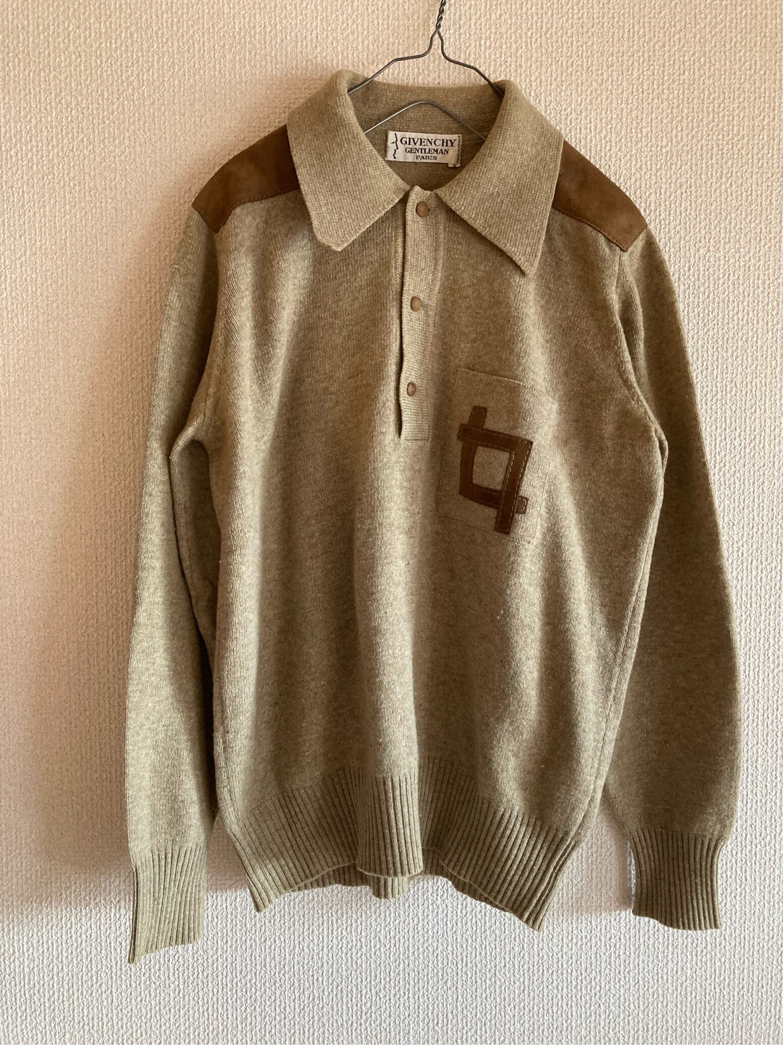 くすんだベージュにライトブラウンのスエードパッチがあたたかい印象のGIVENCHY 1980's Vintageニット!