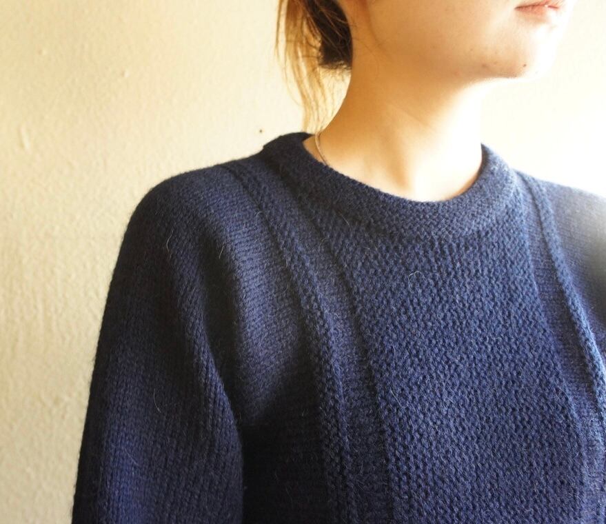 程よく詰まったネックから、切り替えの無い袖まで繋がった編みが、上品なスポーティさ!