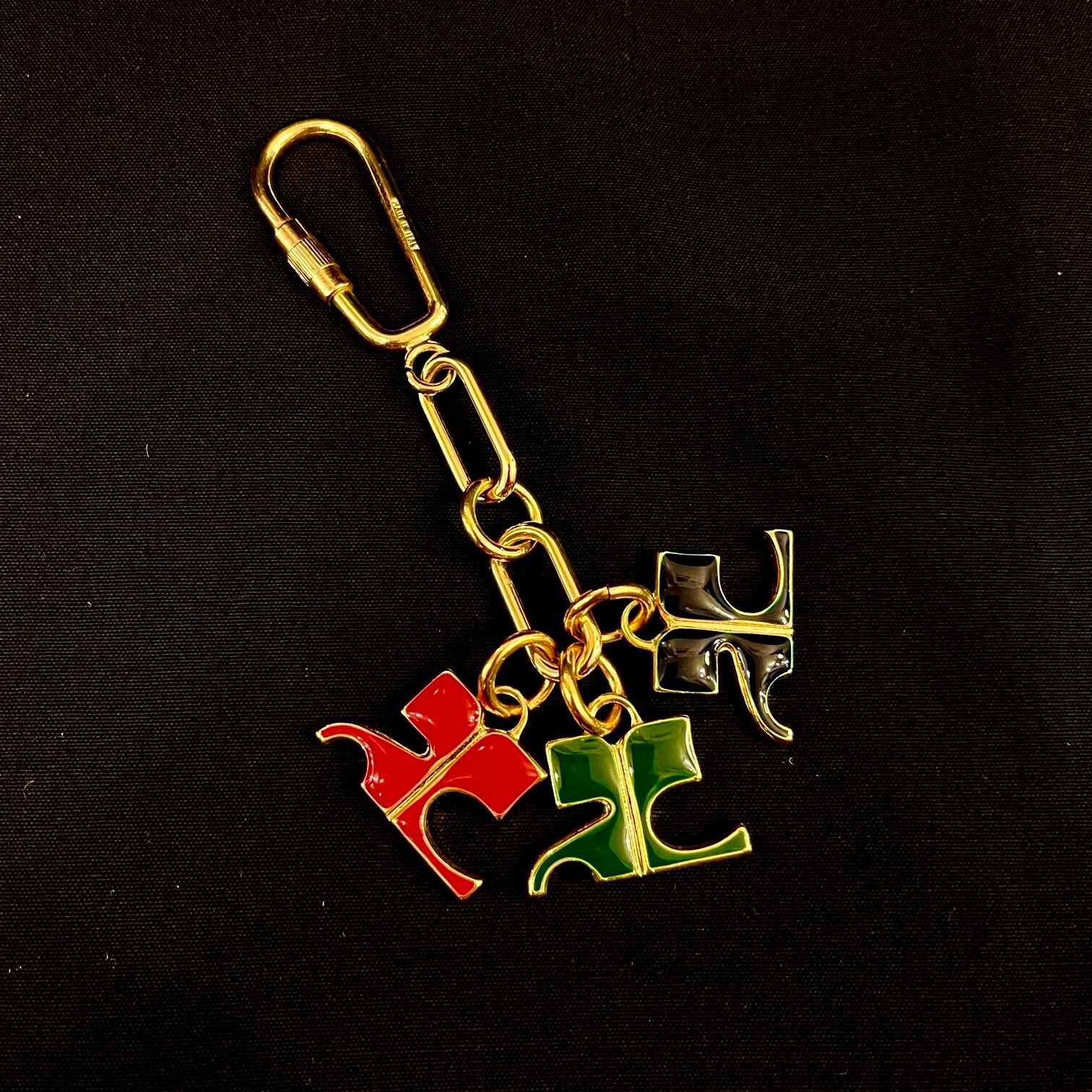 COURREGES "Red×Green×Navy" Triple-Logo Key Charm