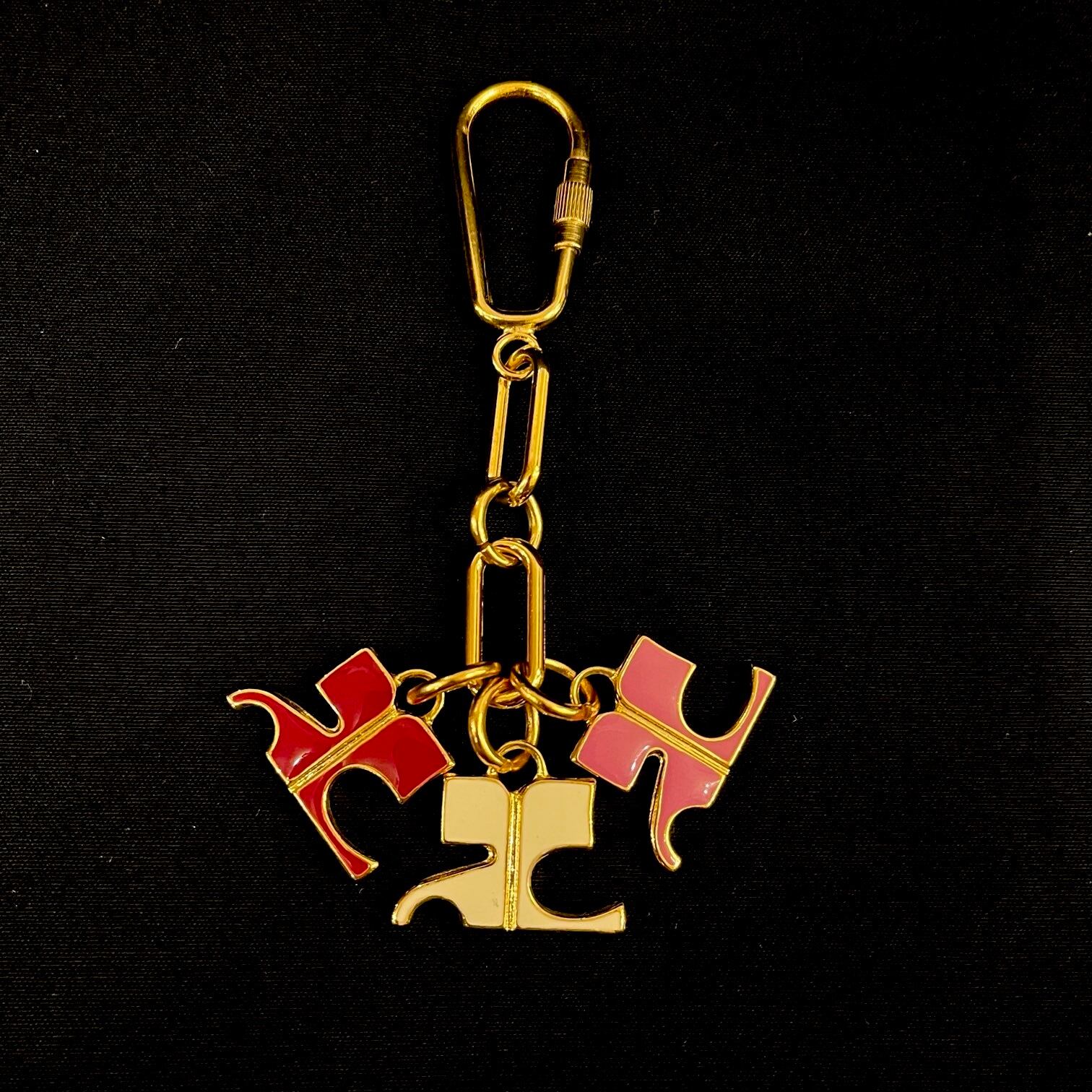 COURREGES "White×Pink×Bordeaux" Triple-Logo Key Charm