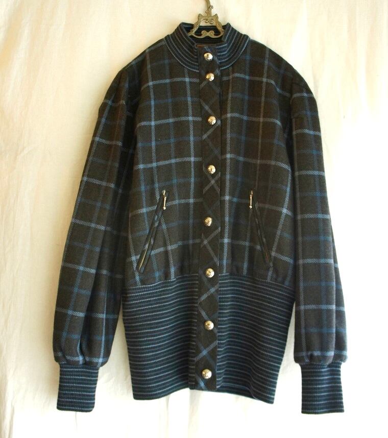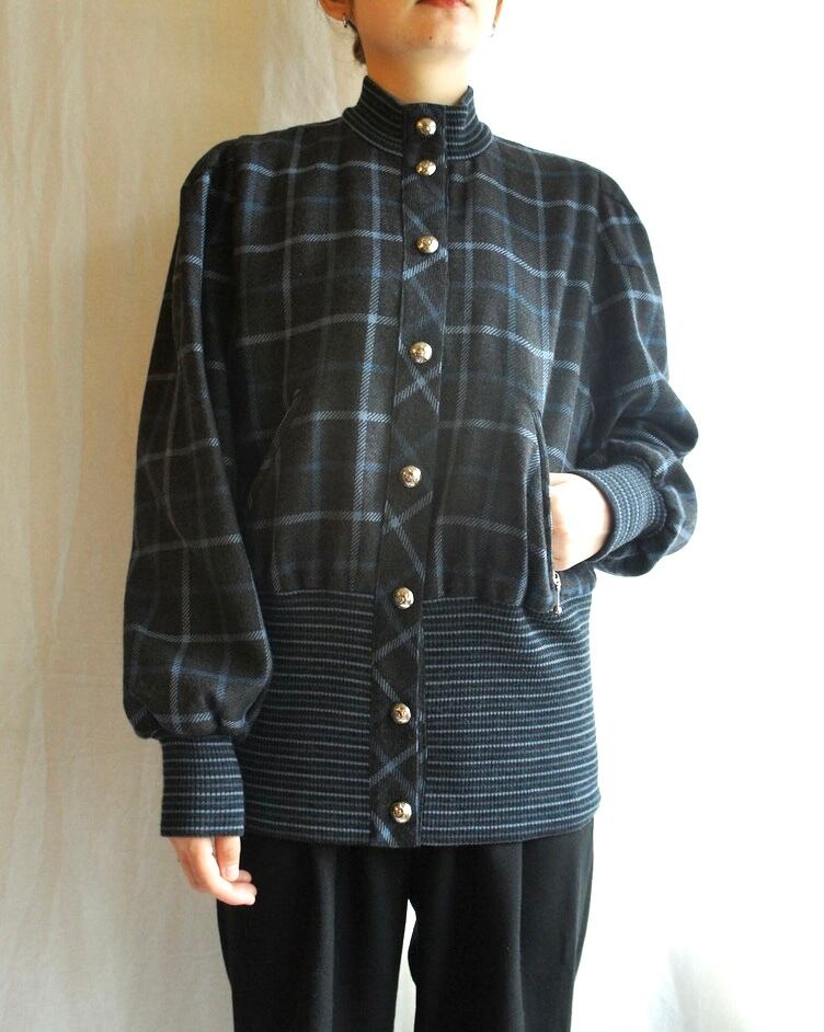 グレーのウール地にブルーのチェックパターンとストライプのコンビがクールなELEGANCEのVintageブルゾン!