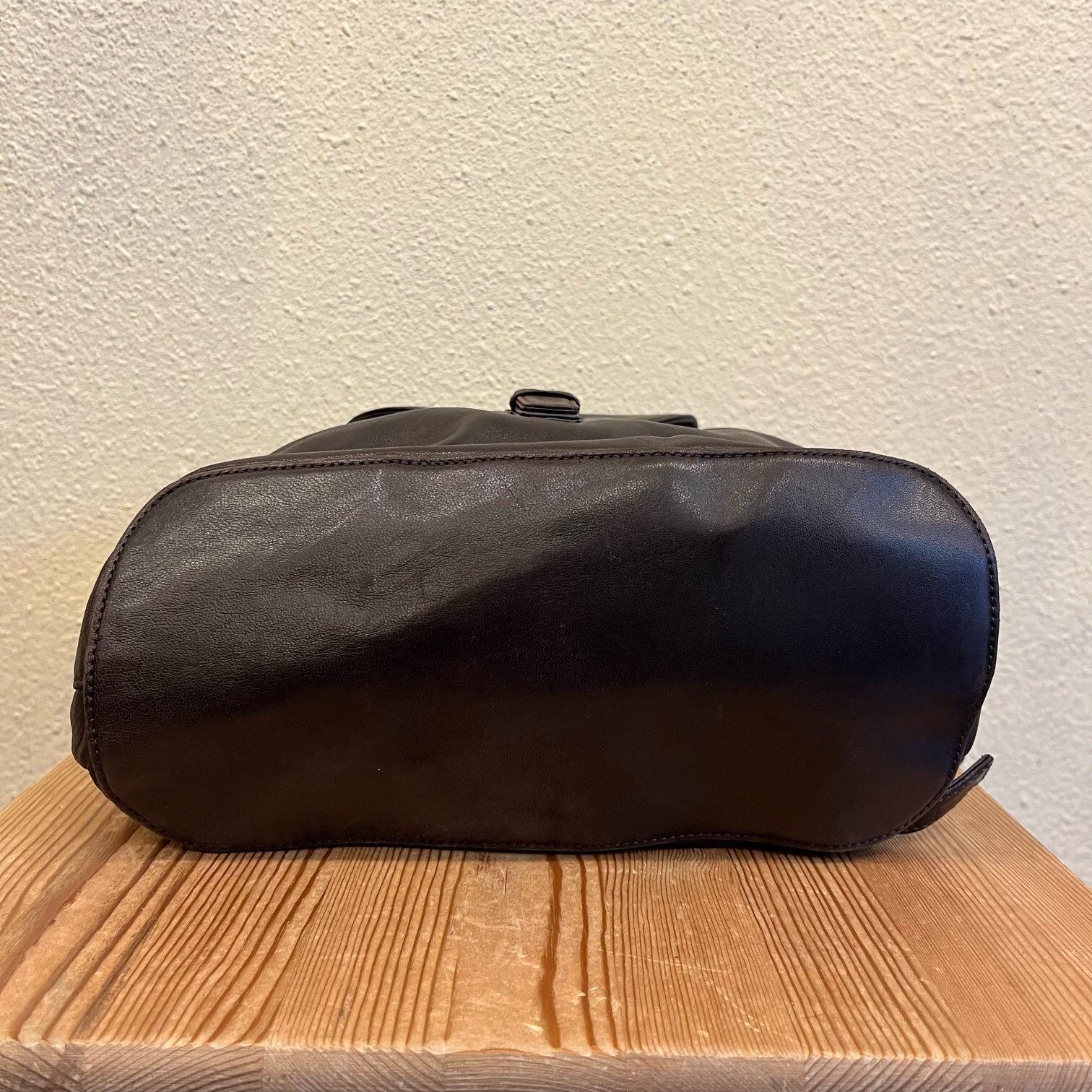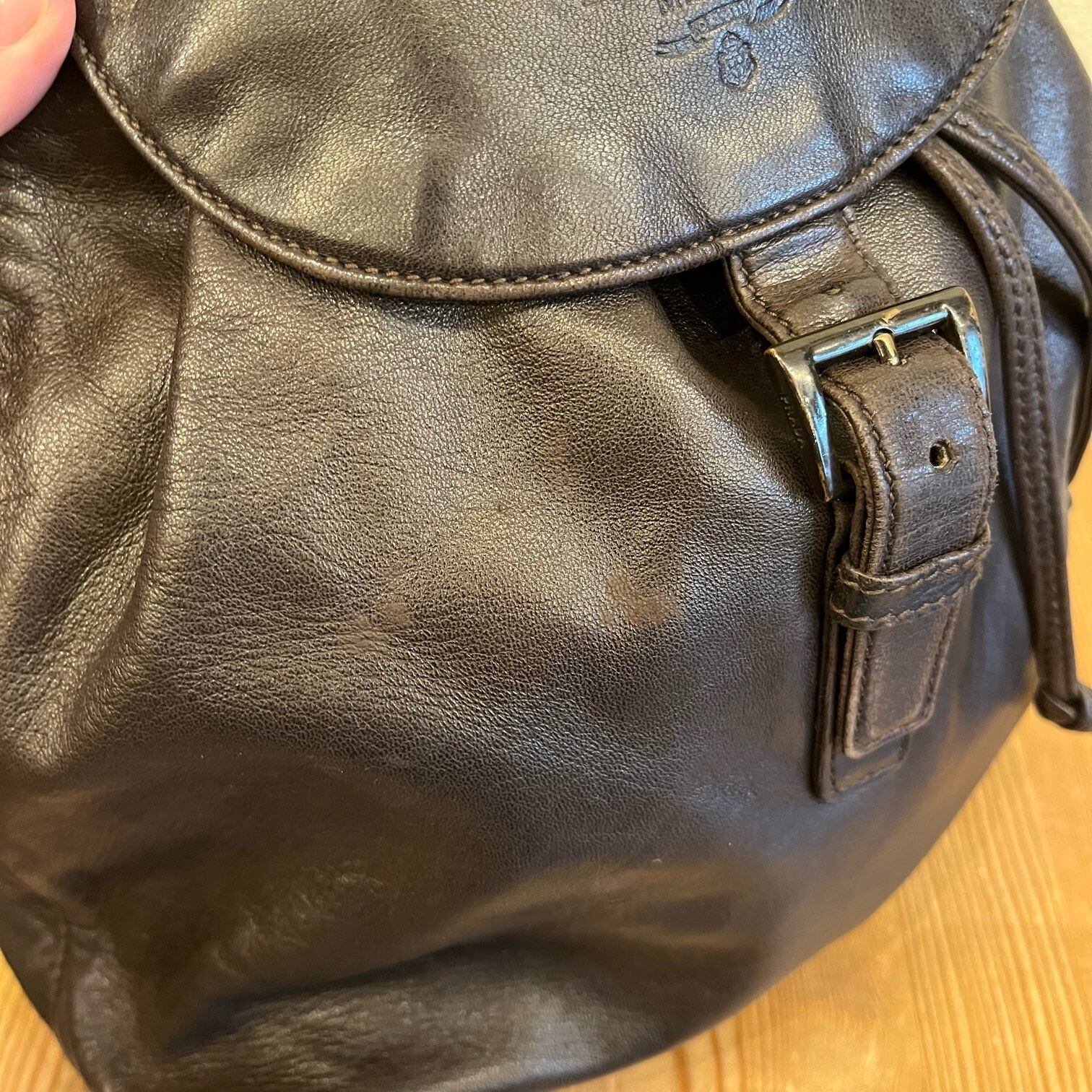 Dark BrownのレザーにチェーンストラップがモードなPRADAのリュック!
