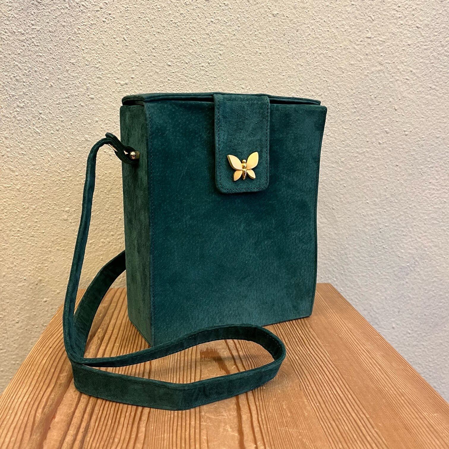 LANVIN "Green Suede × Gold Butterfly" Shoulder Bag