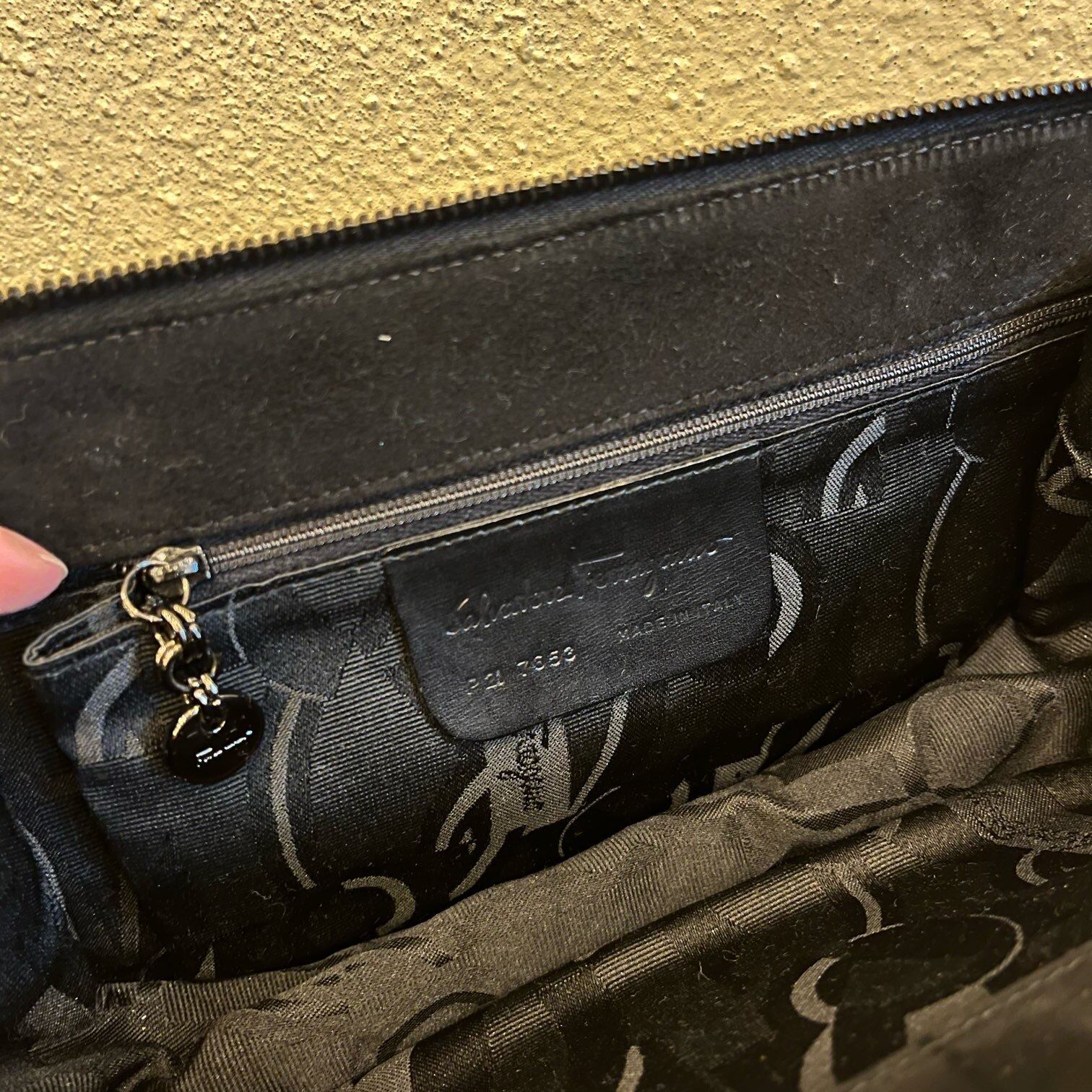 こっくりとしたブラックスエードが洗練された印象のFERRAGAMOクラッチバッグ!