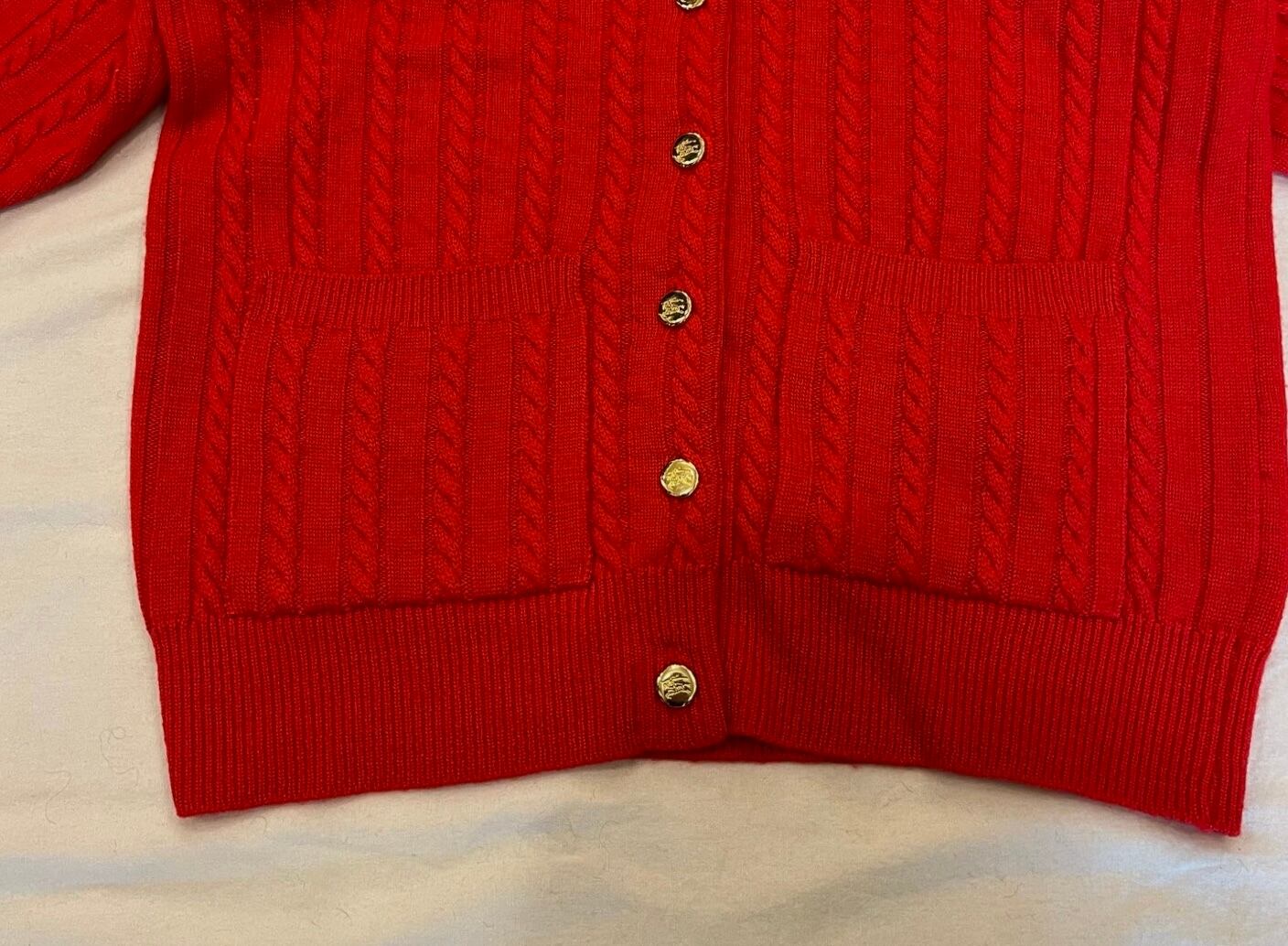 真っ赤な色味がはつらつとした印象のBURBERRYニットカーデ!