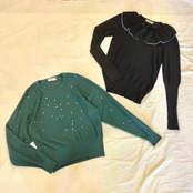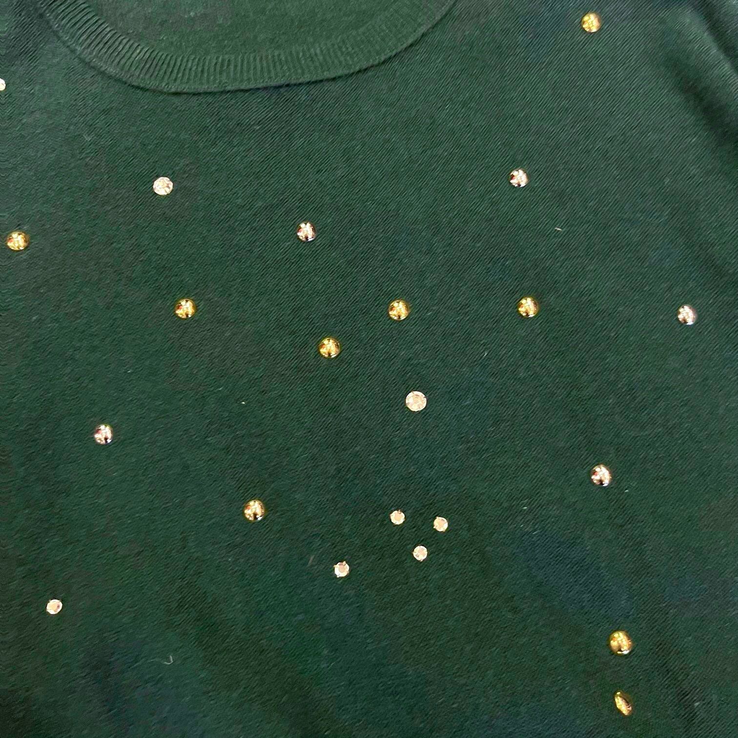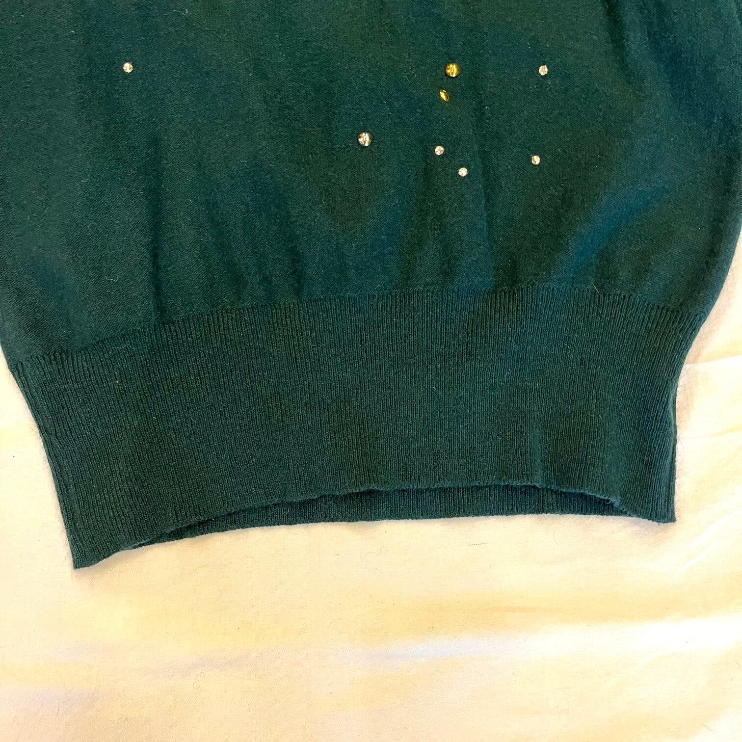 深いグリーンにメタルビーズとラインストーンがキラッと輝くSONIAのニット!