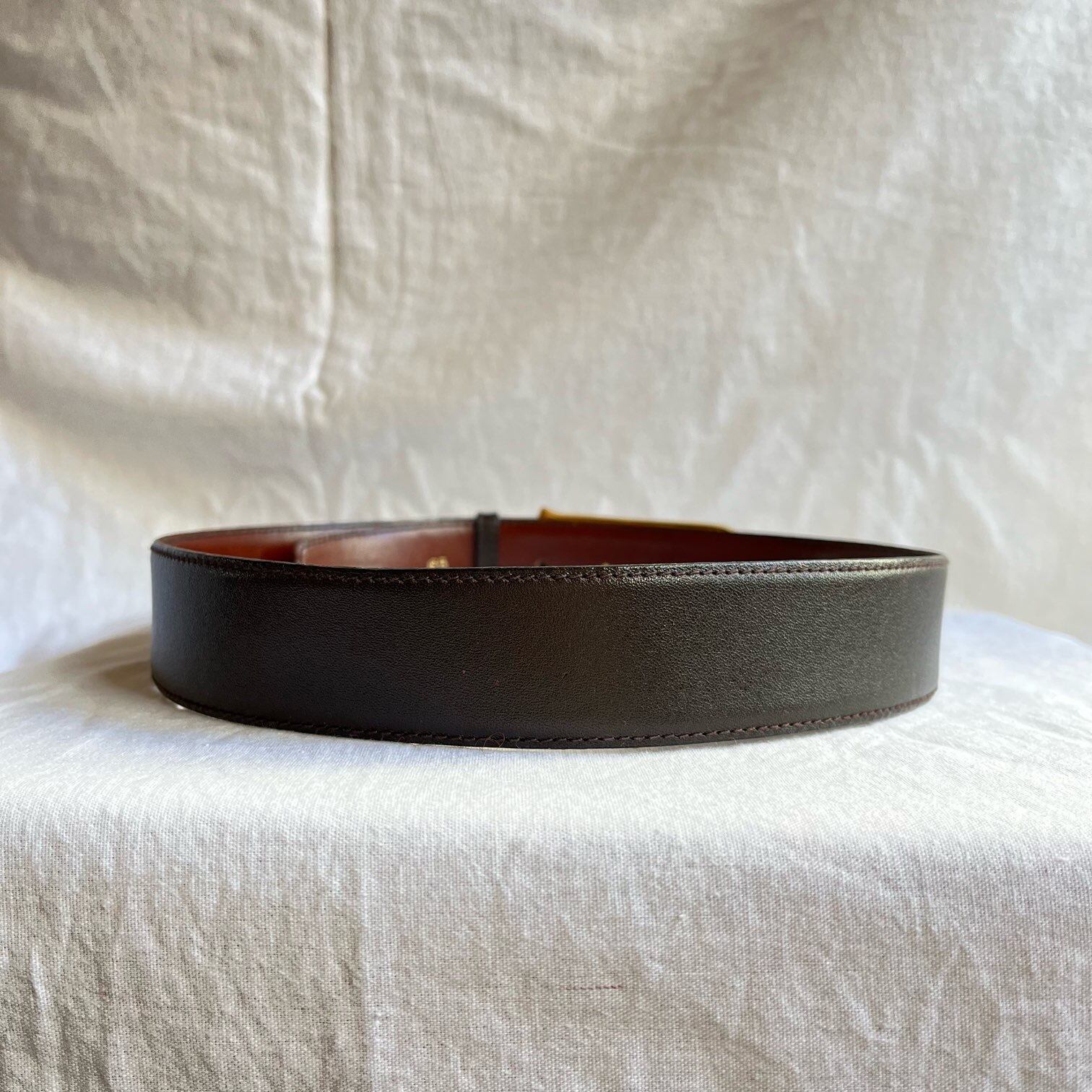 Dark Brownのレザーベルトとゴールドのバックルがクラシックなデザイン☆