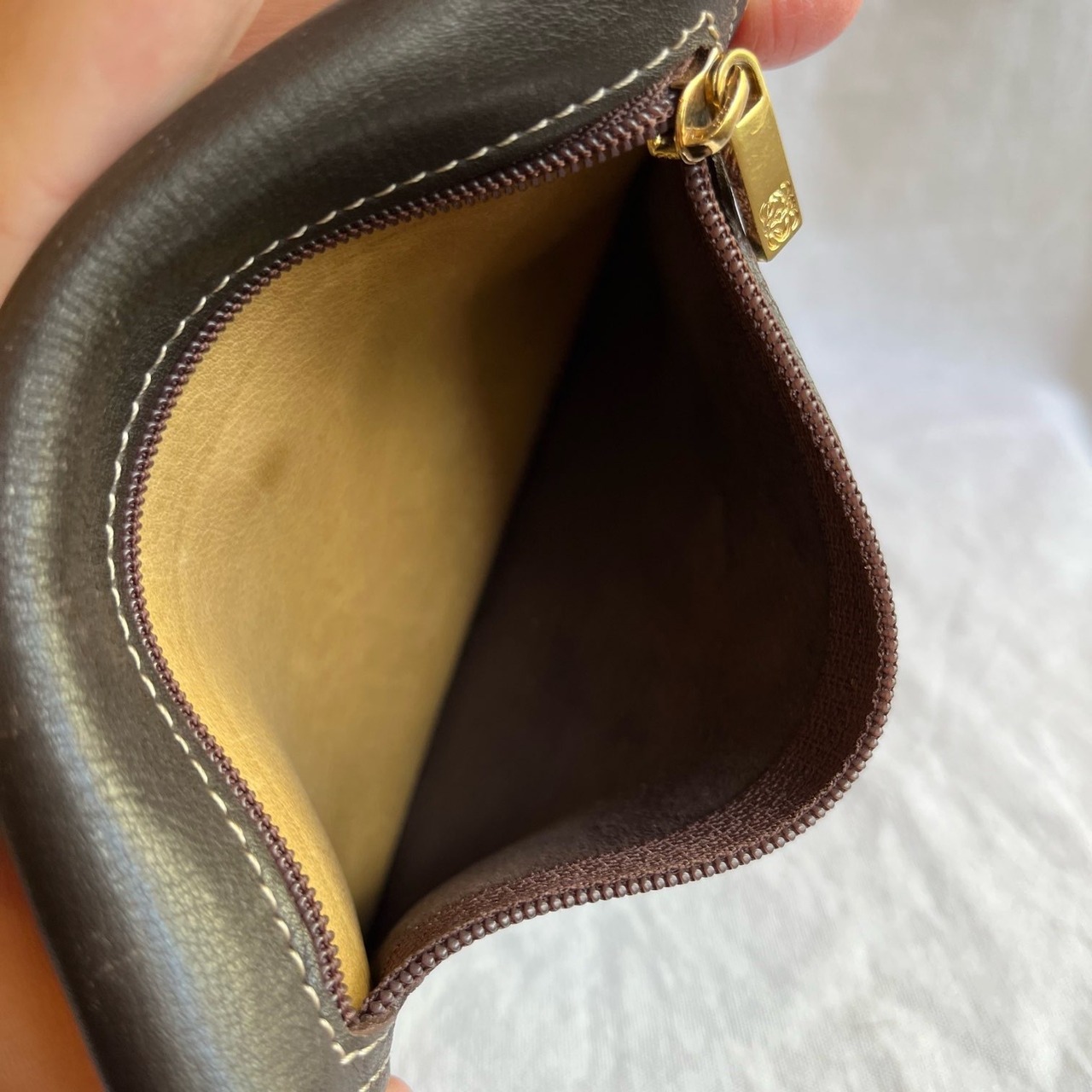 Light Brownのスエードと、Dark BrownのレザーのバイカラーがLOEWEらしいカードケース!