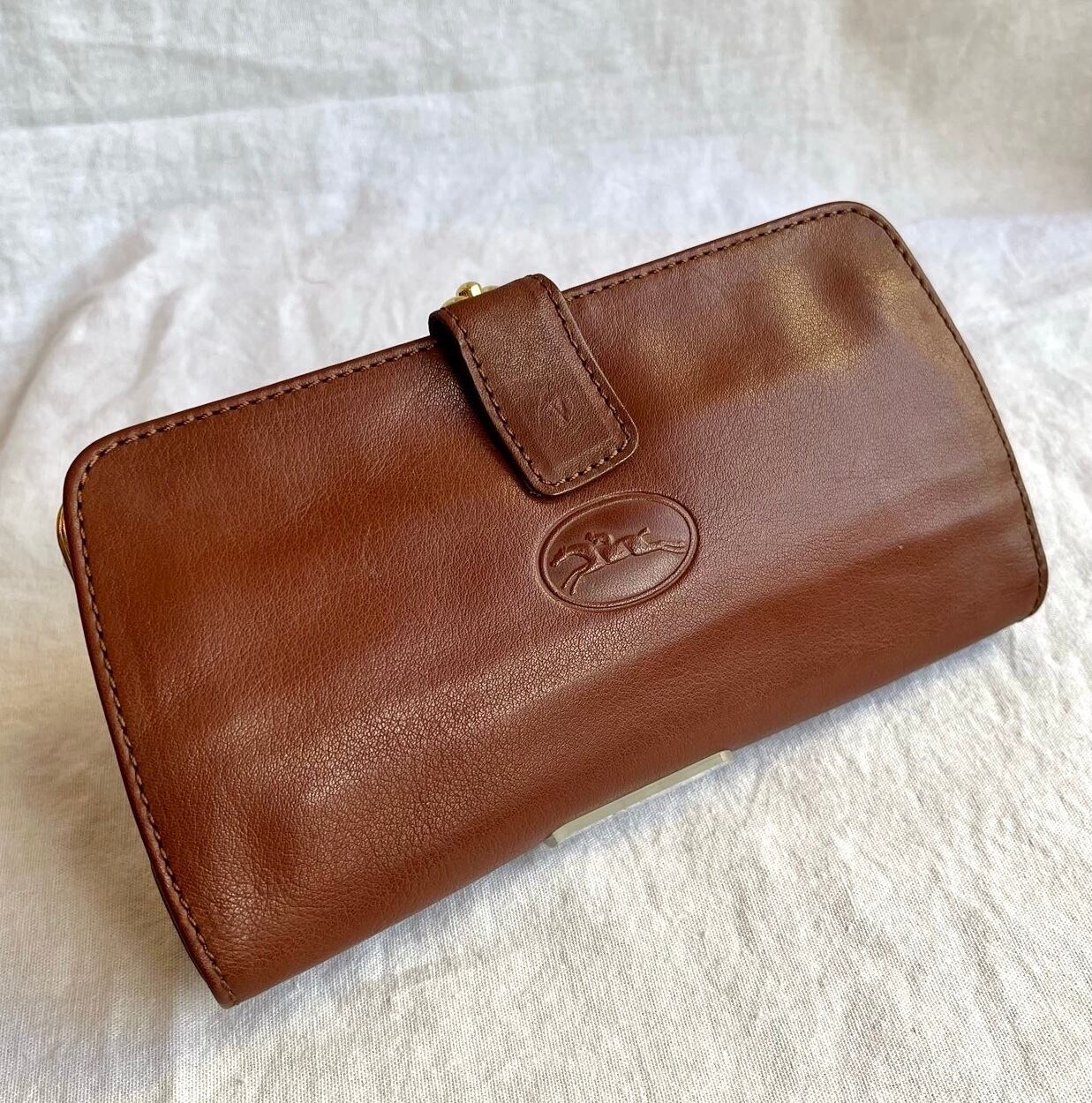 LONGCHAMP "Brown Leather" Metal Clasp Long Wallet